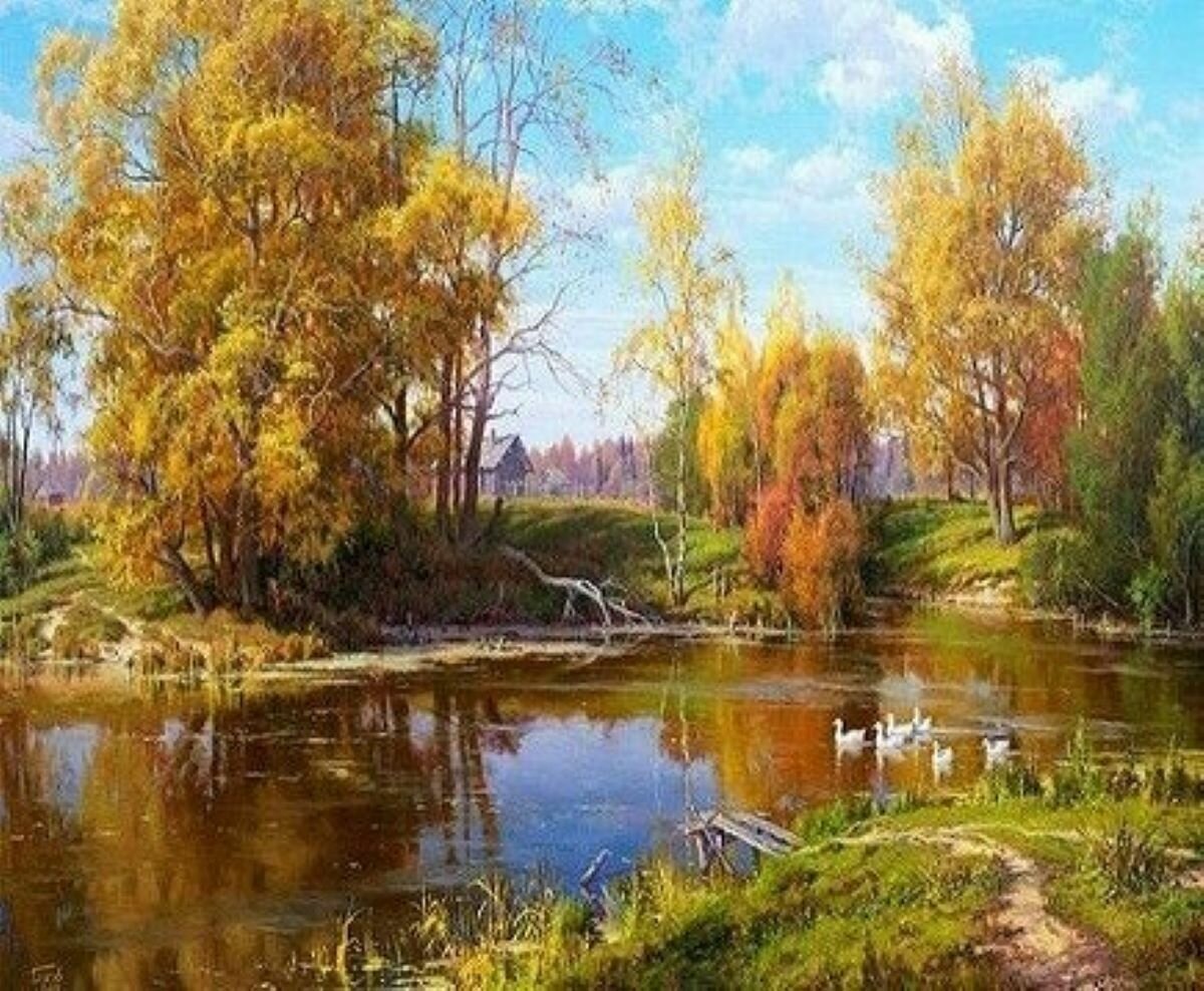 Вышивка крестиком 46х56 - Золотая осень в лесу информация:
