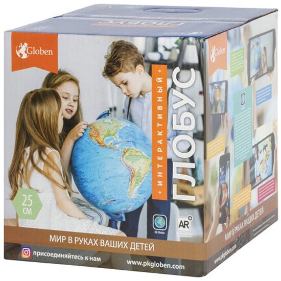Интерактивный глобус GLOBEN физико-политический , диаметр 320 мм, с подсветкой информация: