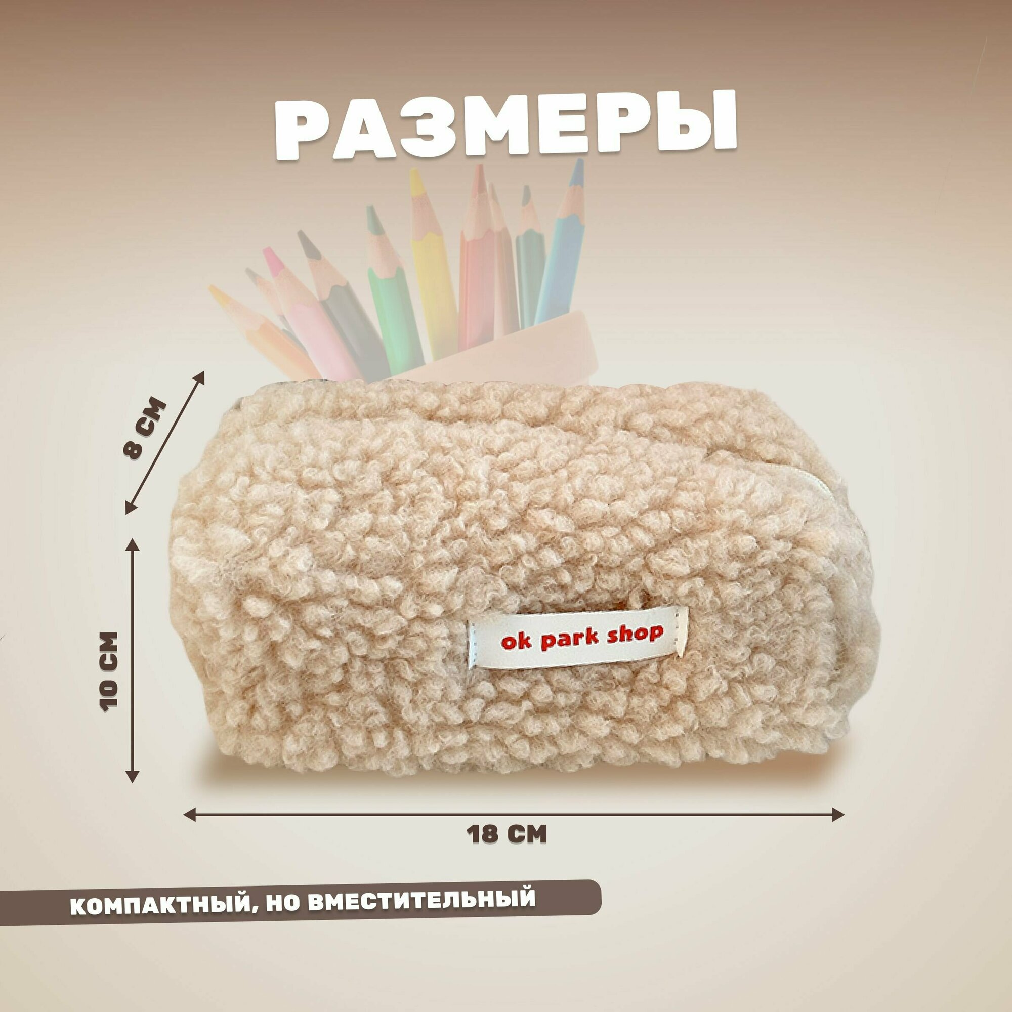 10 цен на Пенал - косметичка плюшевый на молнии мягкий тканевый, цвет бежевый