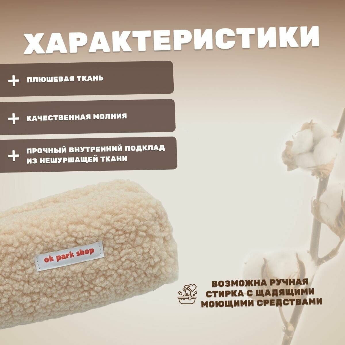 Пенал - косметичка плюшевый на молнии мягкий тканевый, цвет бежевый информация: