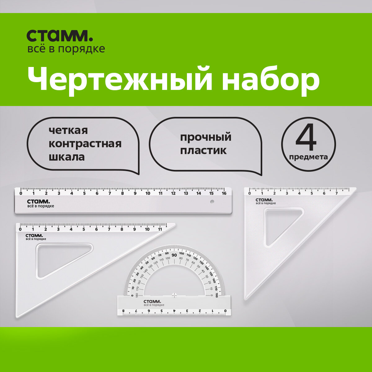 Отзывы на Набор чертежный СТАММ, размер S (линейка 16см, 2 треугольника, транспортир), прозрачный, бесцветный, европодвес