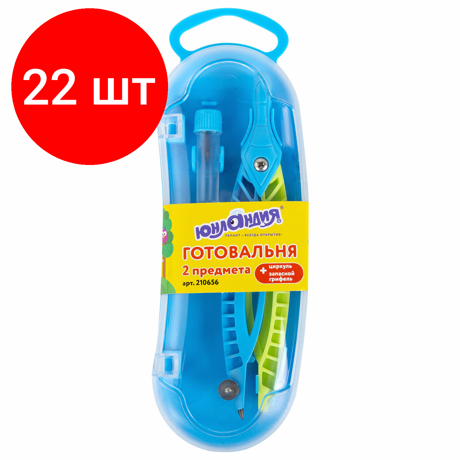 Комплект 22 шт, Готовальня юнландия, 2 предмета: пластиковый циркуль 120 мм, грифель, пенал, 210656 информация: