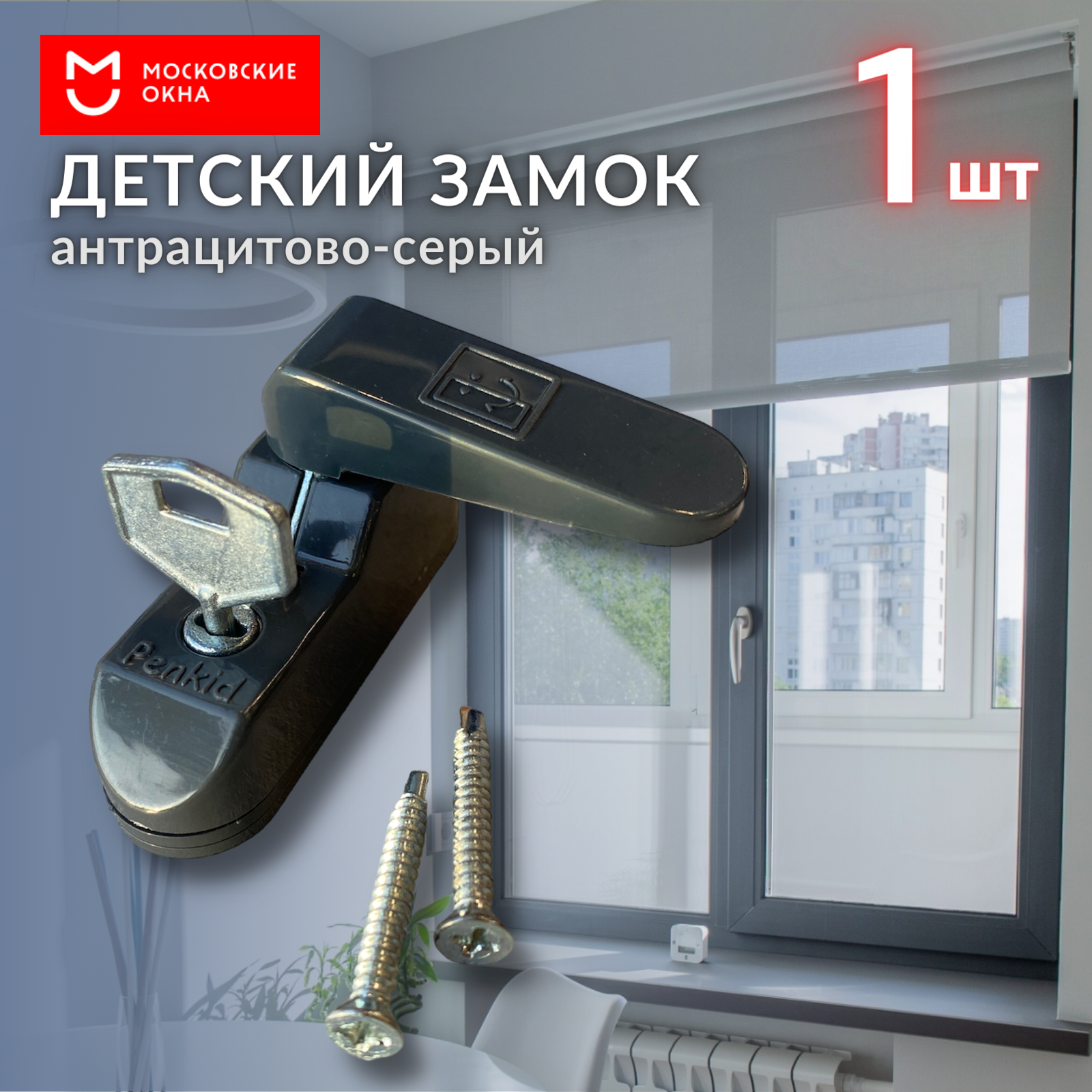 10 цен на Блокиратор на пластиковое окно серый антрацит (детский замок с ключом) / Защита на окно для детей с ключом