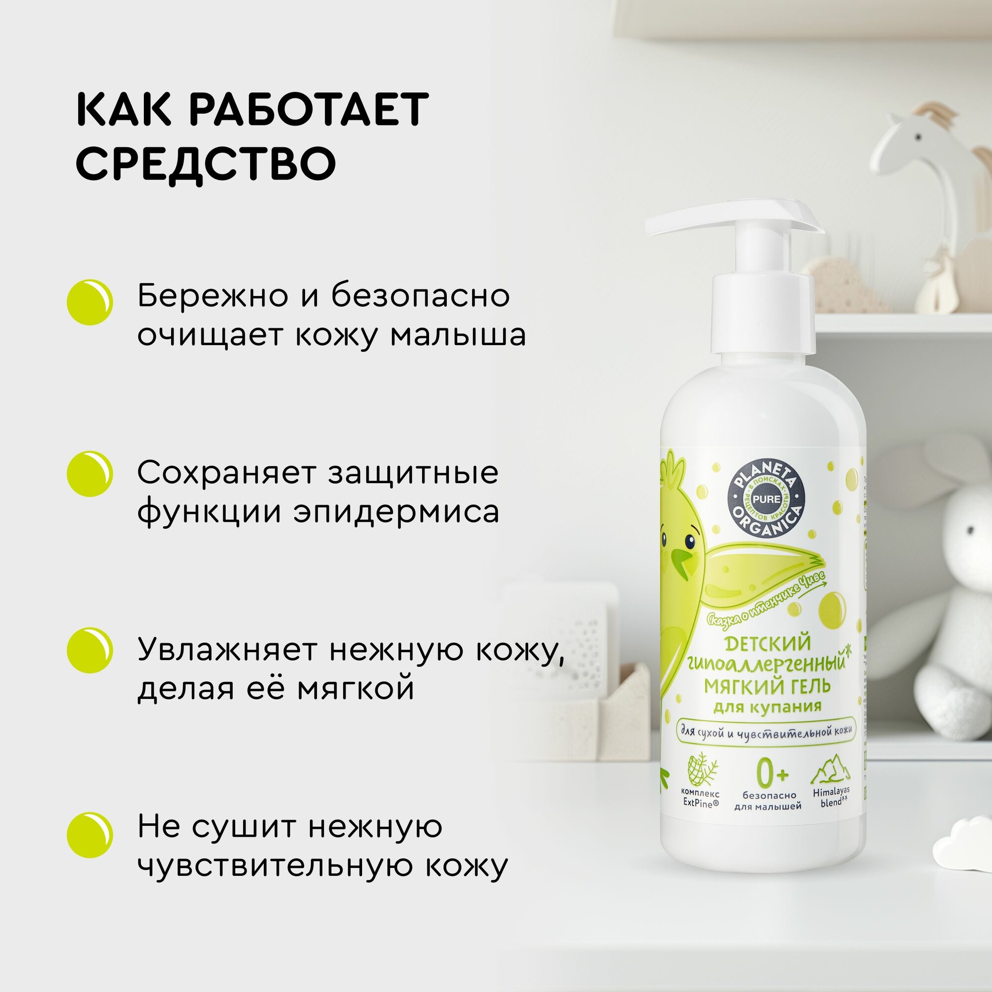 Детский мягкий гель Planeta Organica PURE KIDS для купания гипоаллергенный 0+, 270 мл информация: