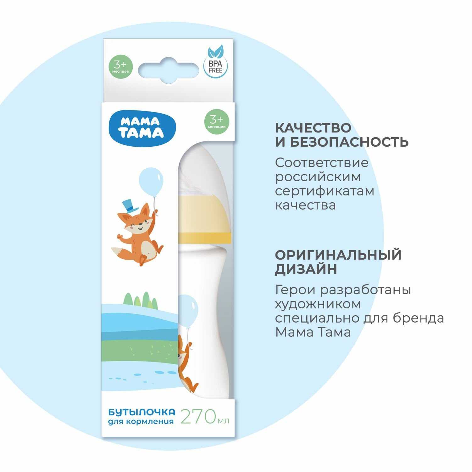 Бутылочка для кормления мама тама полипропиленовая с широким горлышком с силиконовой соской 3мес + , 270 мл 441 ₽