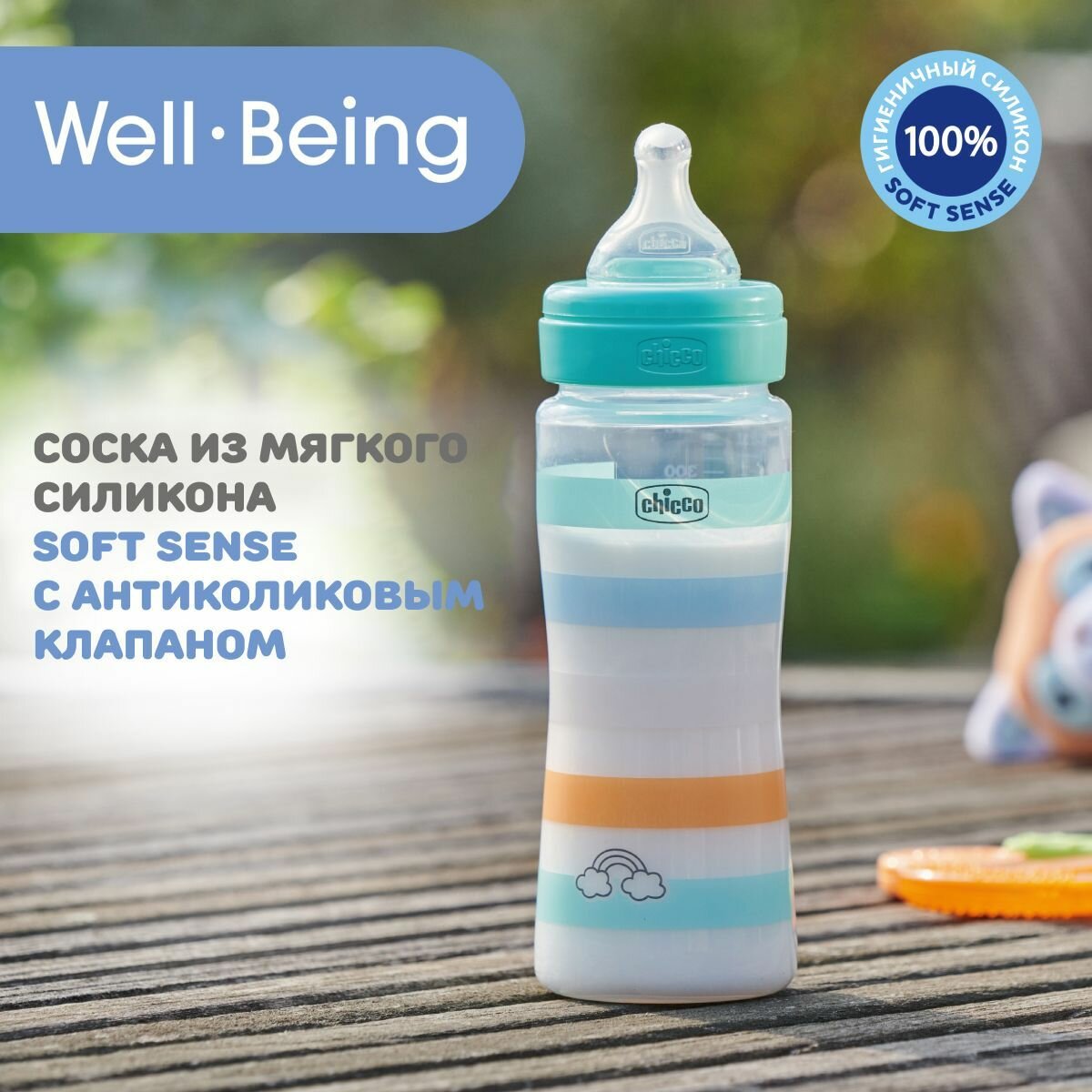 Бутылочка для кормления CHICCO Well-Being Boy 4 мес.+,сил.соска быстр.поток,РР,330мл., зеленая информация: