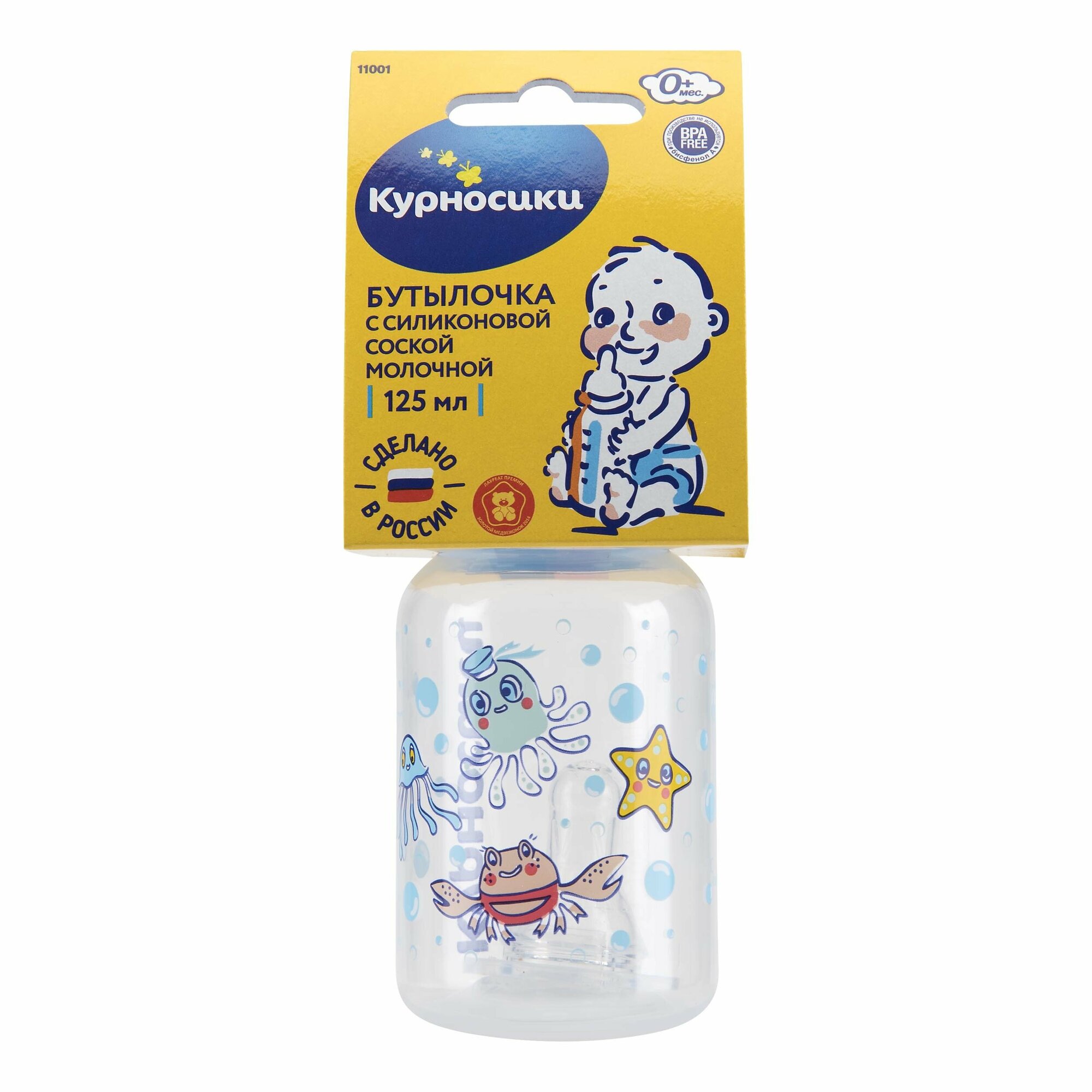 10 цен на Курносики бутылочка с силиконовой соской 125мл 1 шт (11001) в ассортименте