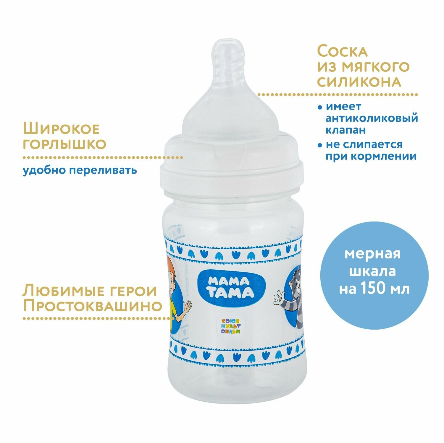 10 цен на Бутылочка для кормления мама тама полипропиленовая с широким горлышком с силиконовой соской, 0мес.+, 150 мл