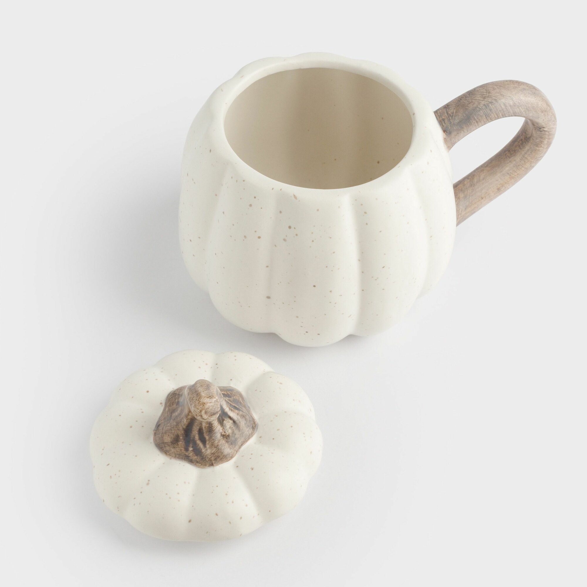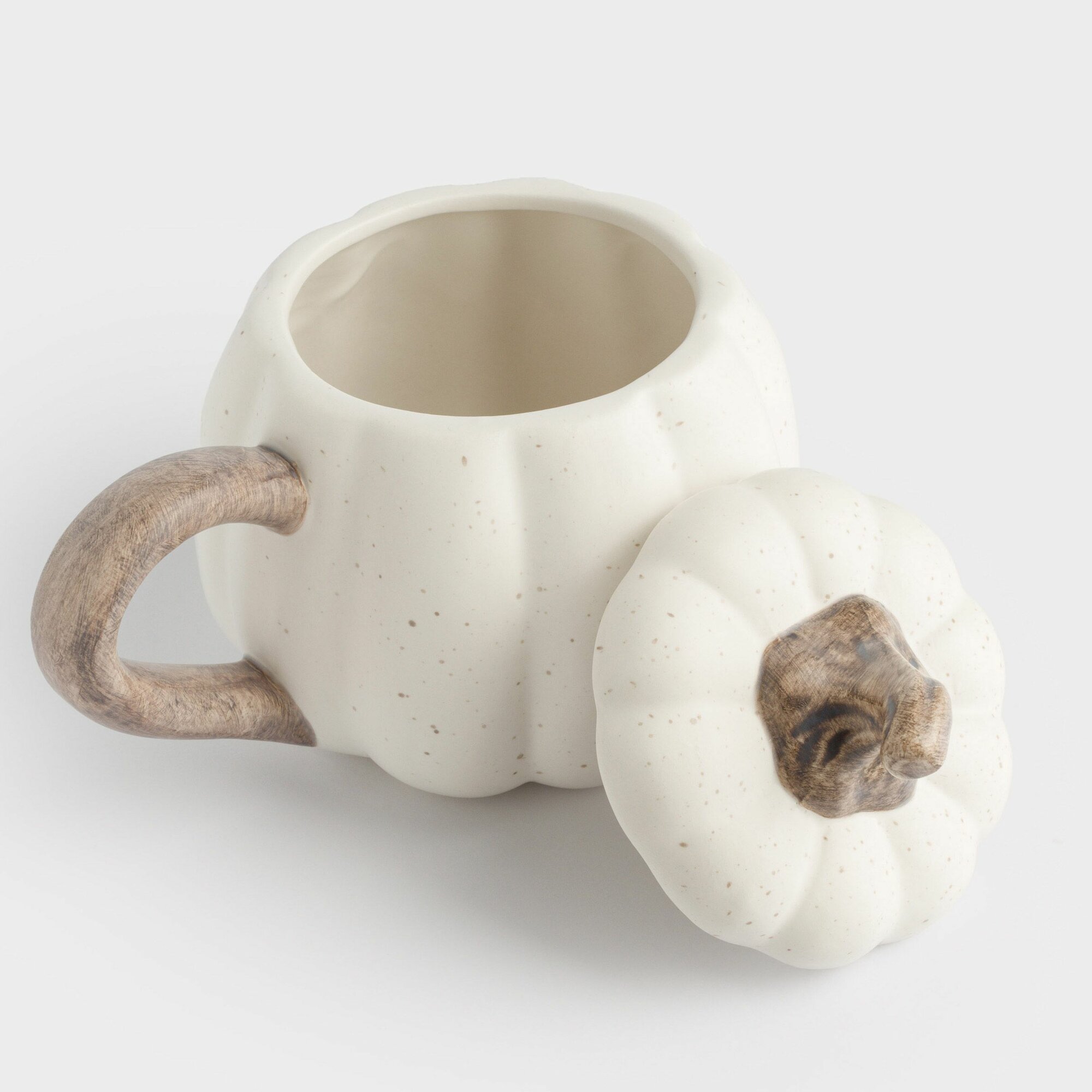 10 цен на Кружка, 550 мл, с крышкой, керамика, молочная, в крапинку, Тыква, Slight frost