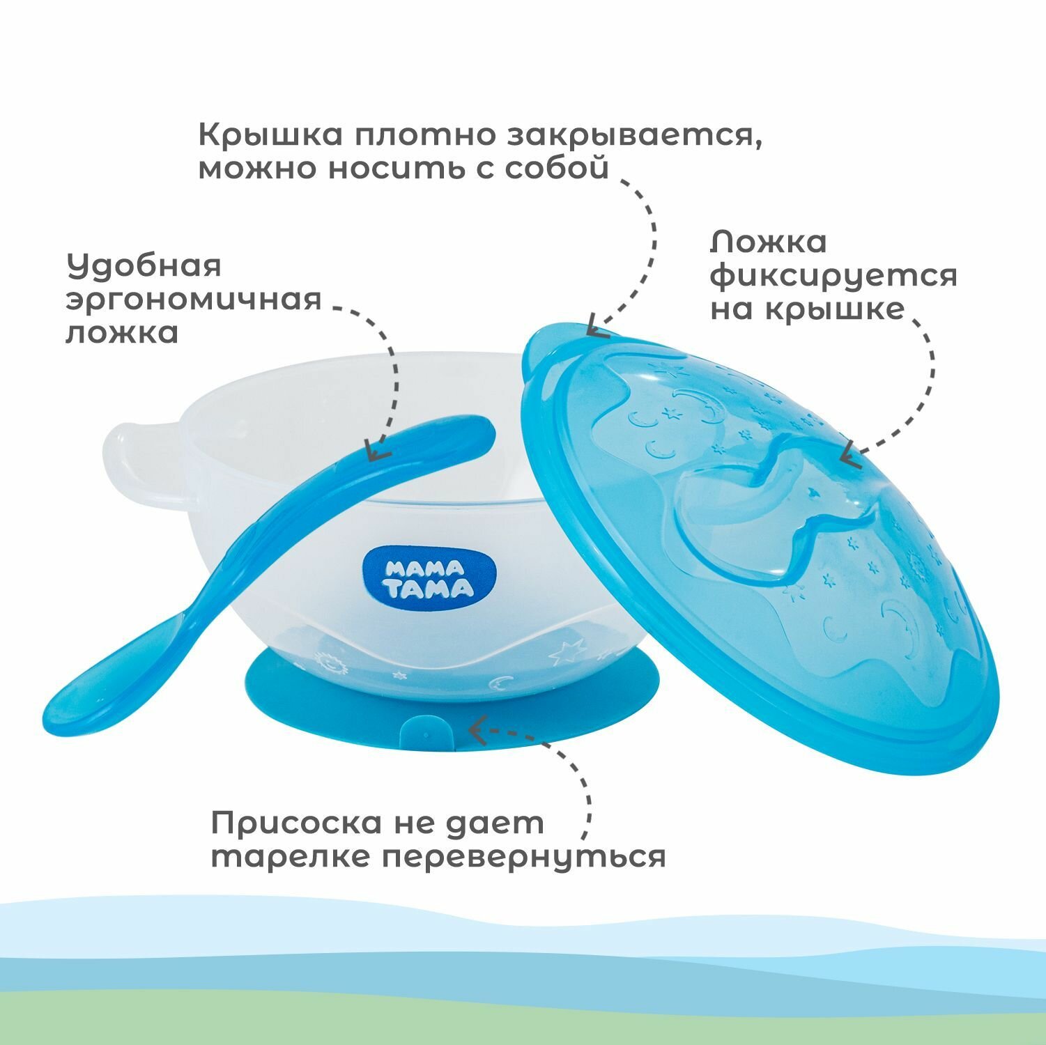 Тарелка на присоске с крышкой и ложкой глубокая пластиковая мама тама 6+ информация: