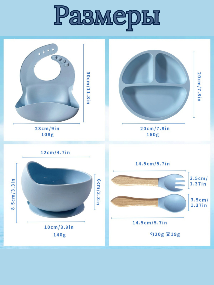 10 цен на Набор силиконовой детской посуды для первого прикорма