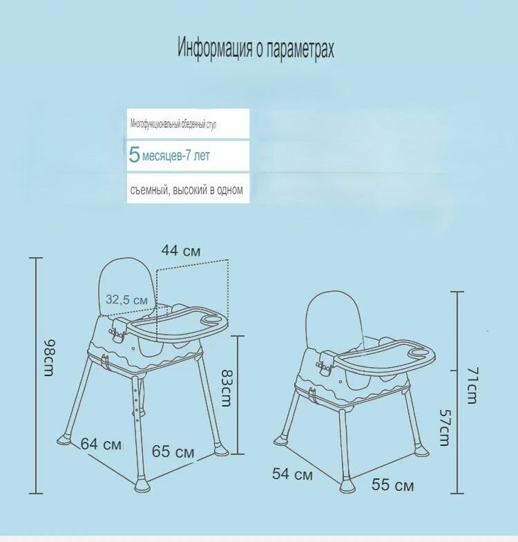 Детский стульчик для кормления голубой складной информация: