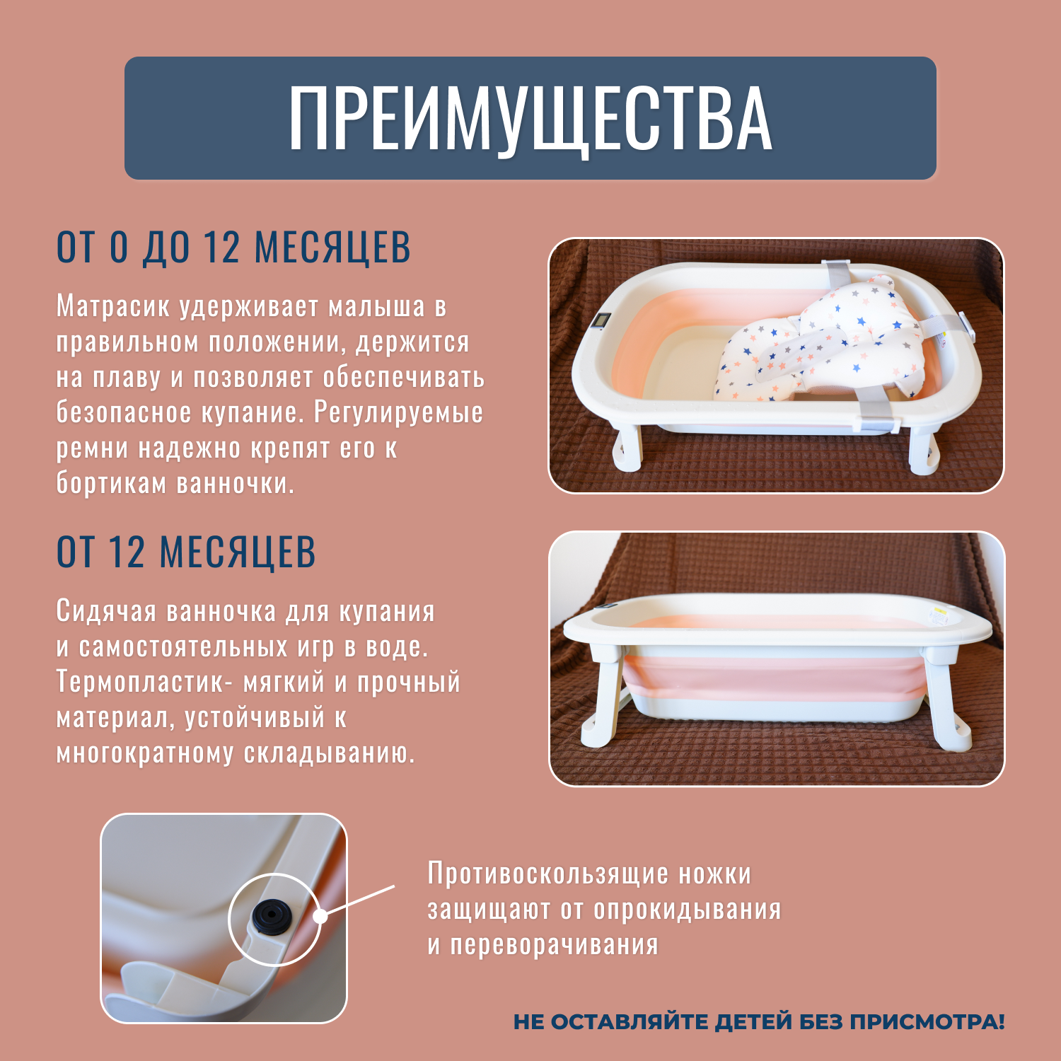 Складная ванночка с термометром и гамаком для малышей от 0-3 лет информация: