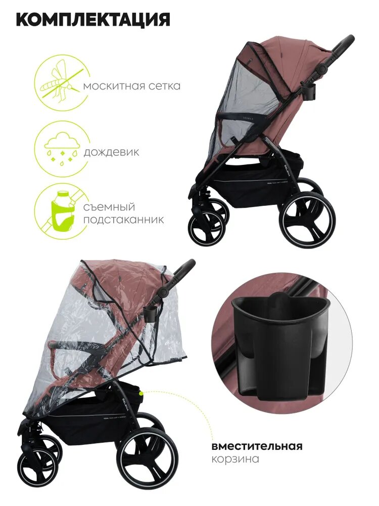 | Аксессуары в комплекте | антимоскитная сетка, дождевик, подстаканник, солнцезащитный козырек |