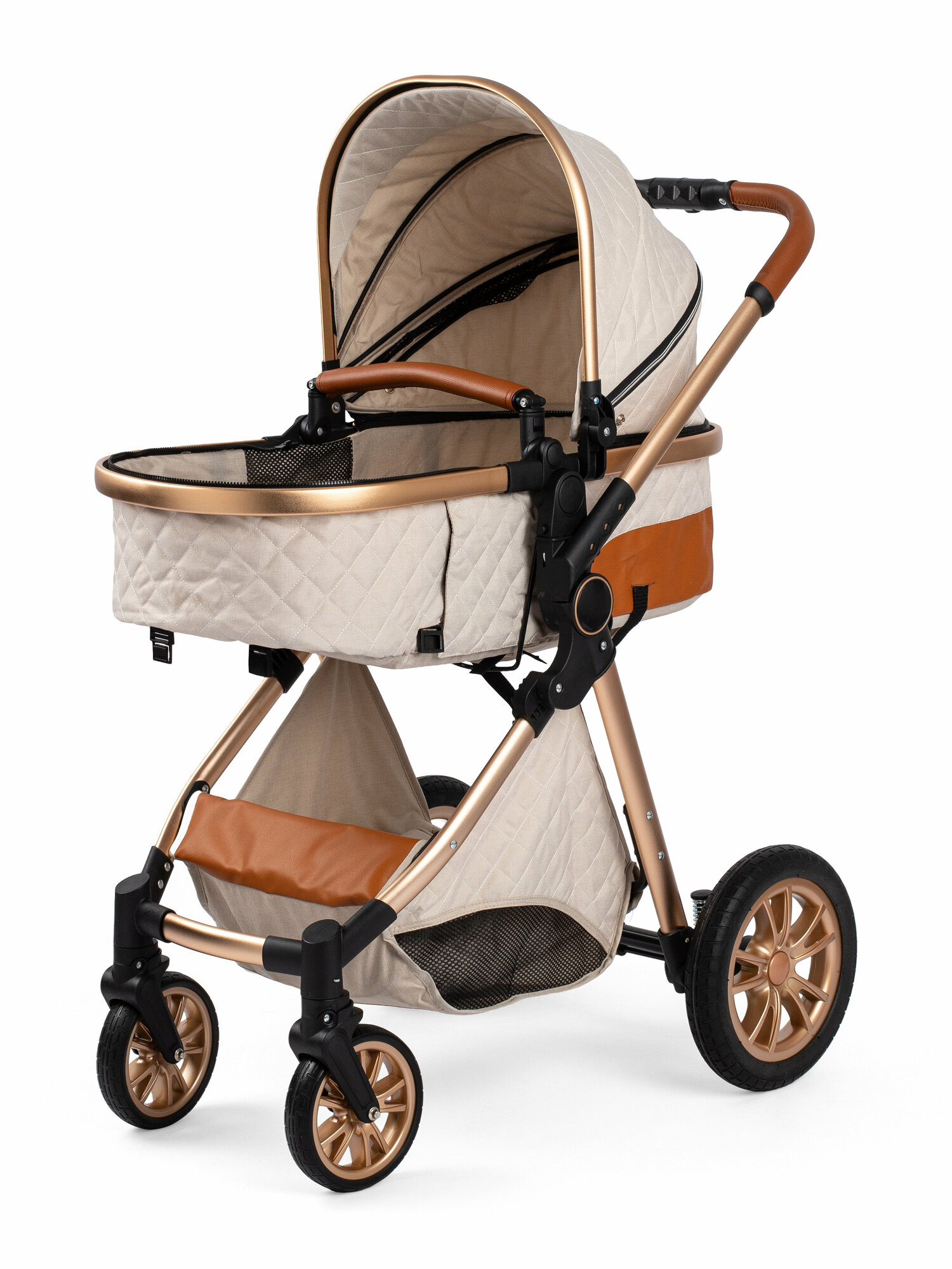 Детская всесезонная прогулочная коляска-трансформер 2в1 для новорожденных детей, бежевая информация: