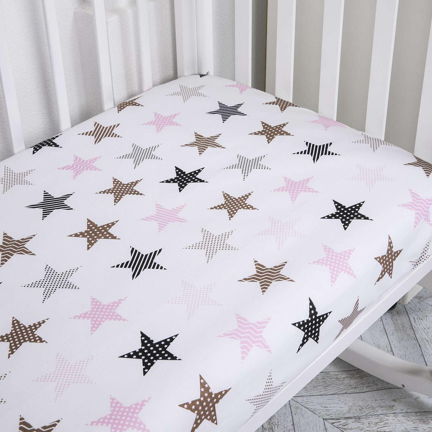 Простынь на резинке 120х60 натяжная для новорожденных, Baby Nice, "Звезды серые", бязь белая 440 ₽