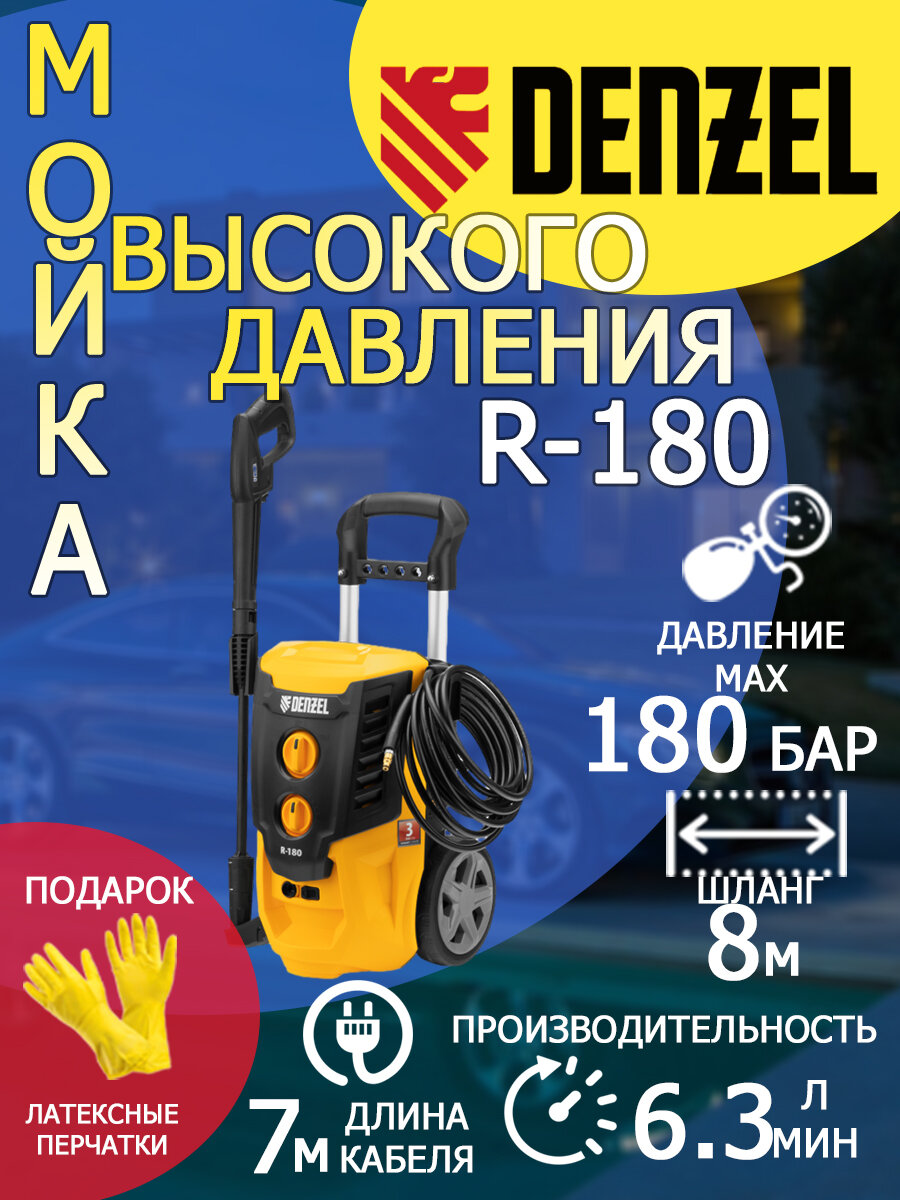 Мойка высокого давления Denzel R-180 2200 Вт 180 бар+латексные перчатки информация: