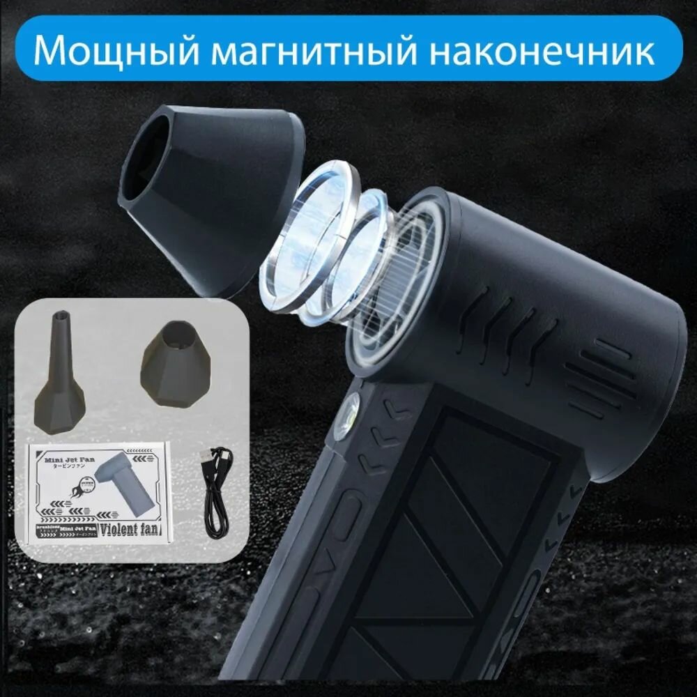 Воздуходувка портативная "Турбовентилятор", черная, Li-ion, 52м/с, 2 аккумулятора