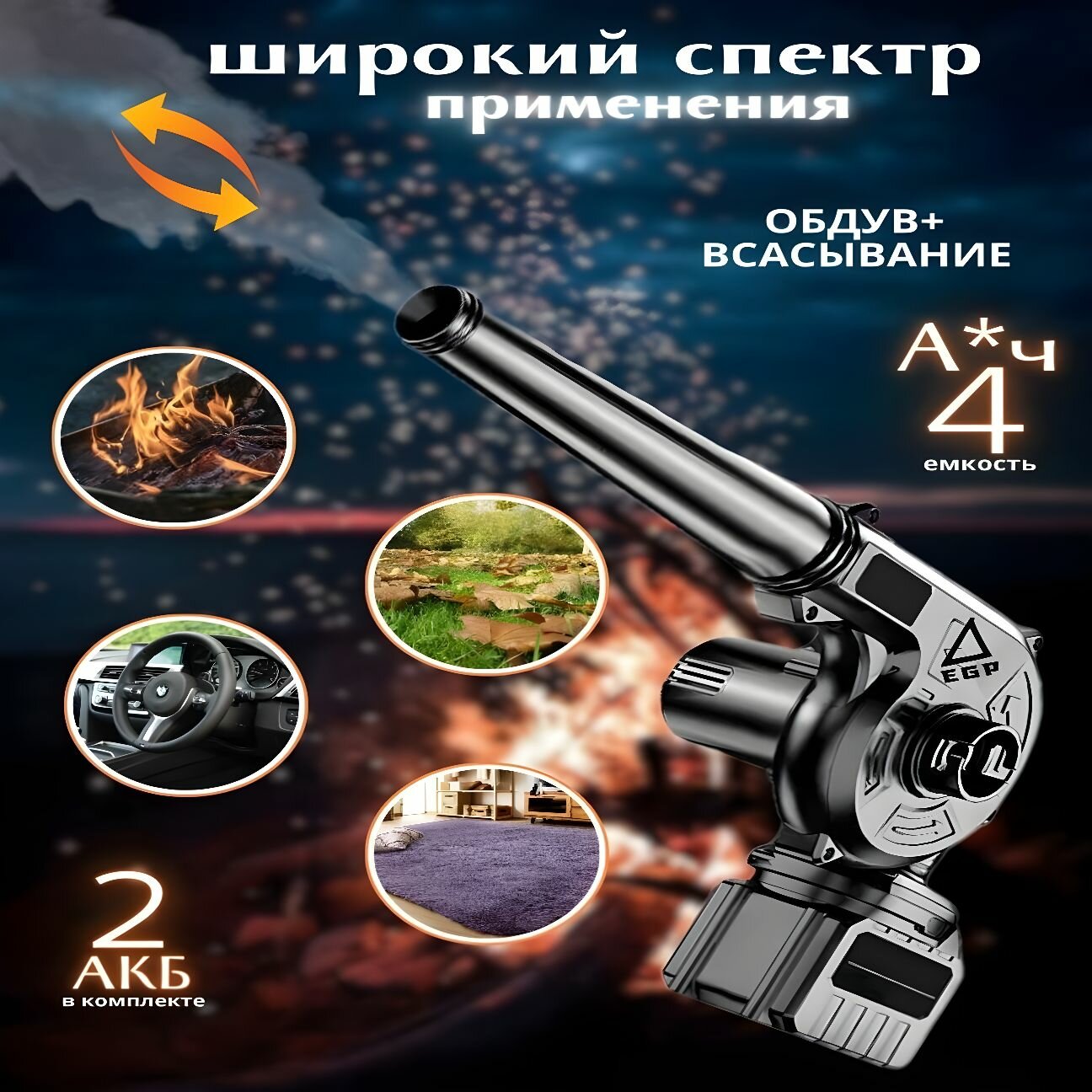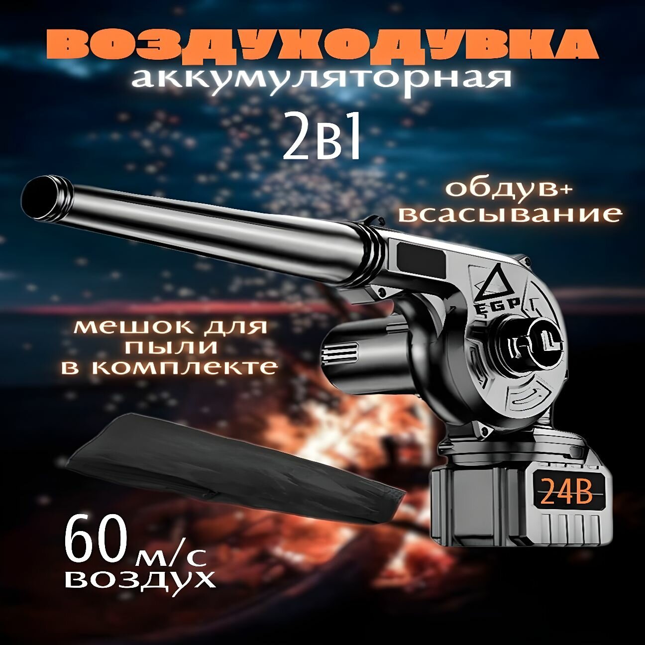 Беспроводная воздуходувка EGP 2 в 1 с функцией пылесоса / 2 АКБ в комплекте информация: