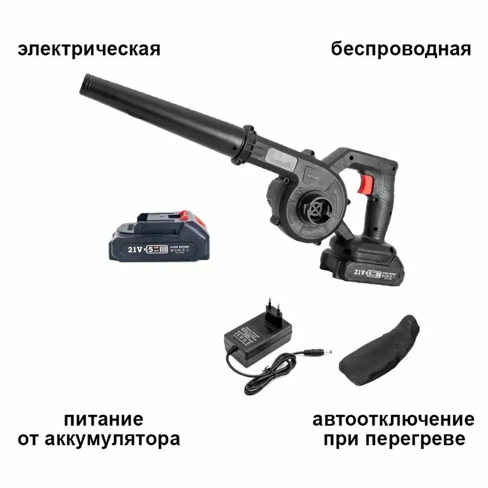Воздуходувка портативная "Турбовентилятор", черная, Li-ion, 52м/с, 2 аккумулятора