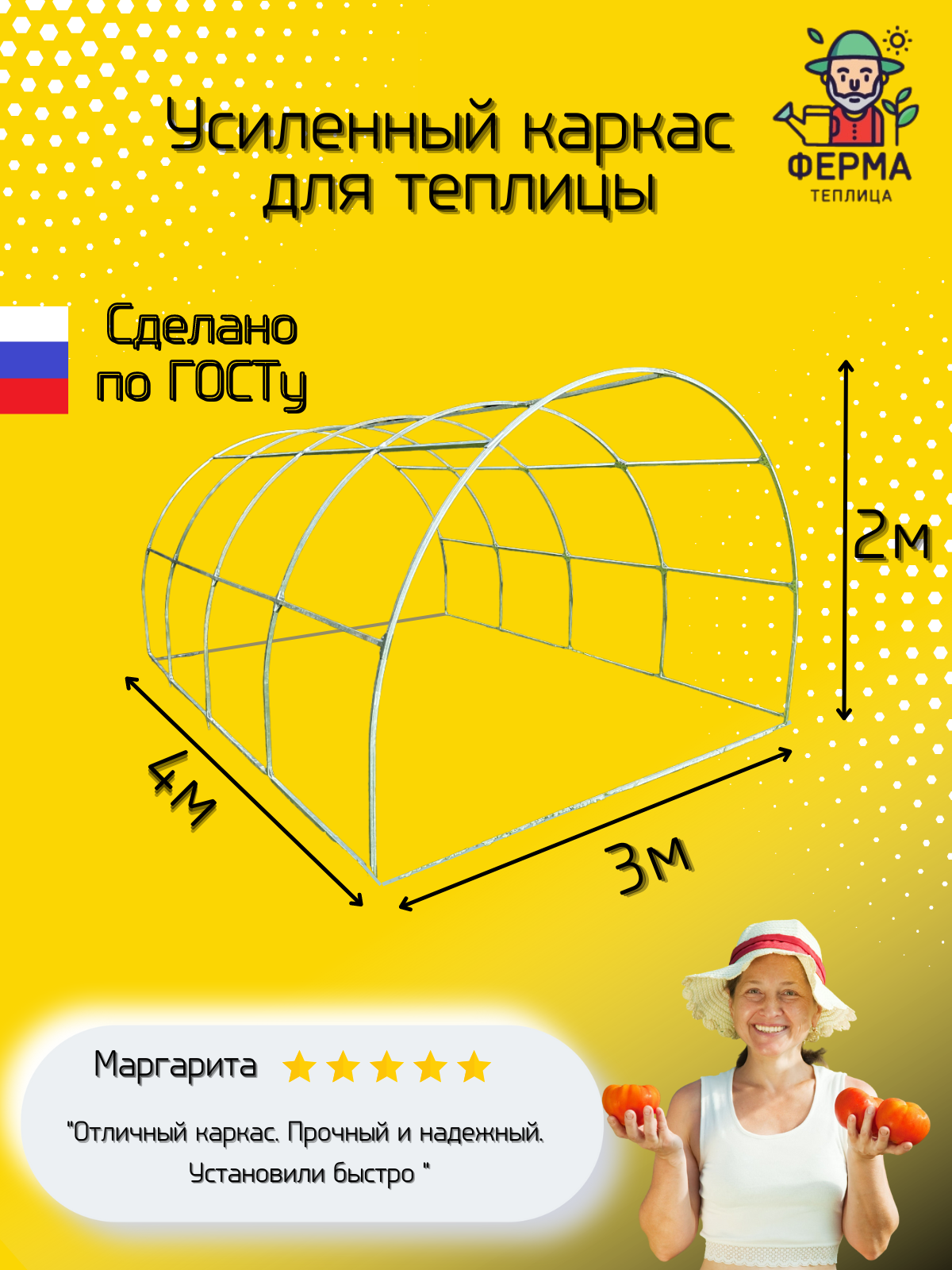 Каркас усиленный под чехол для теплицы 4 метра информация: