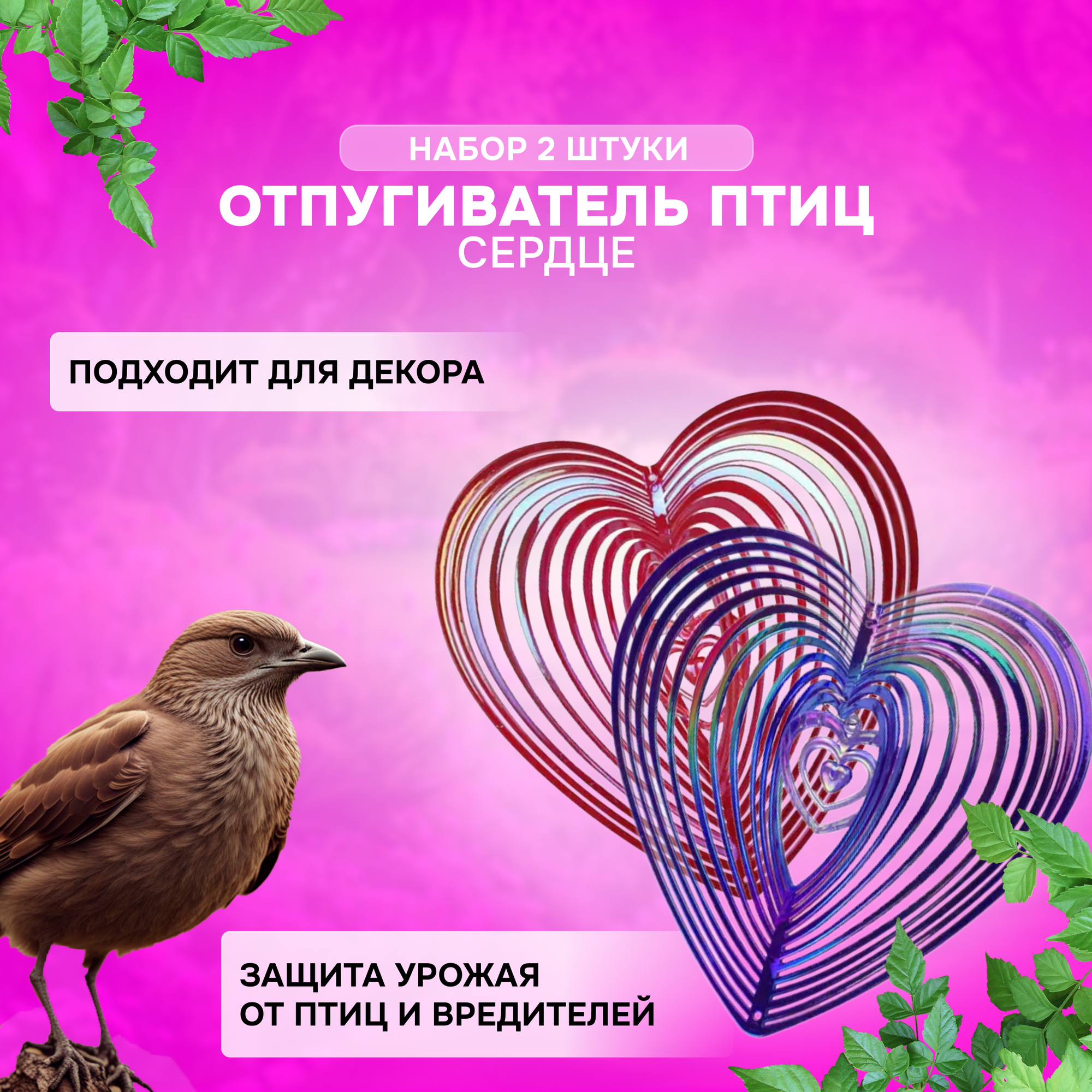 Отзывы на Садовая фигура отпугиватель для птиц для сада / сердце - набор 2 штуки (синее и красное)