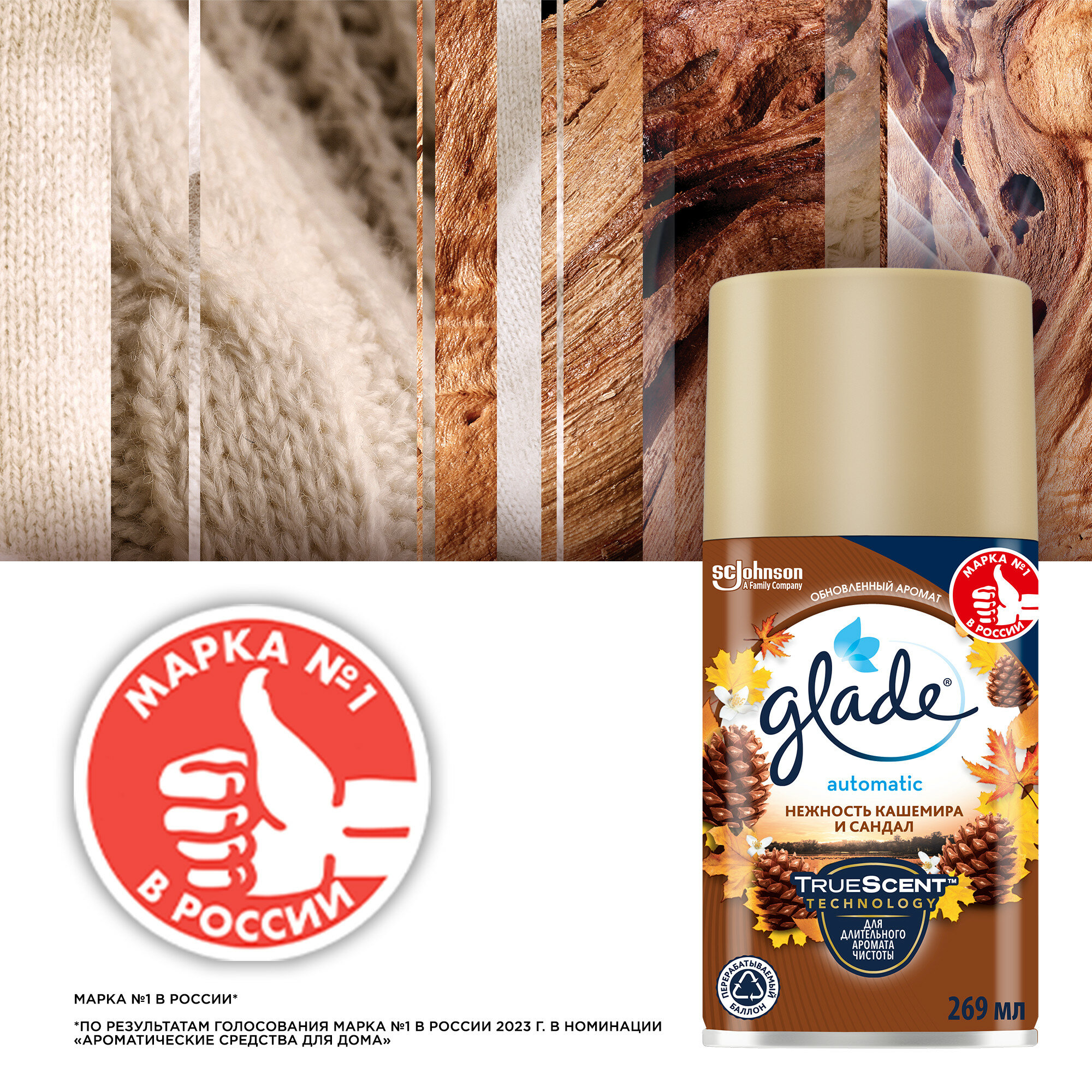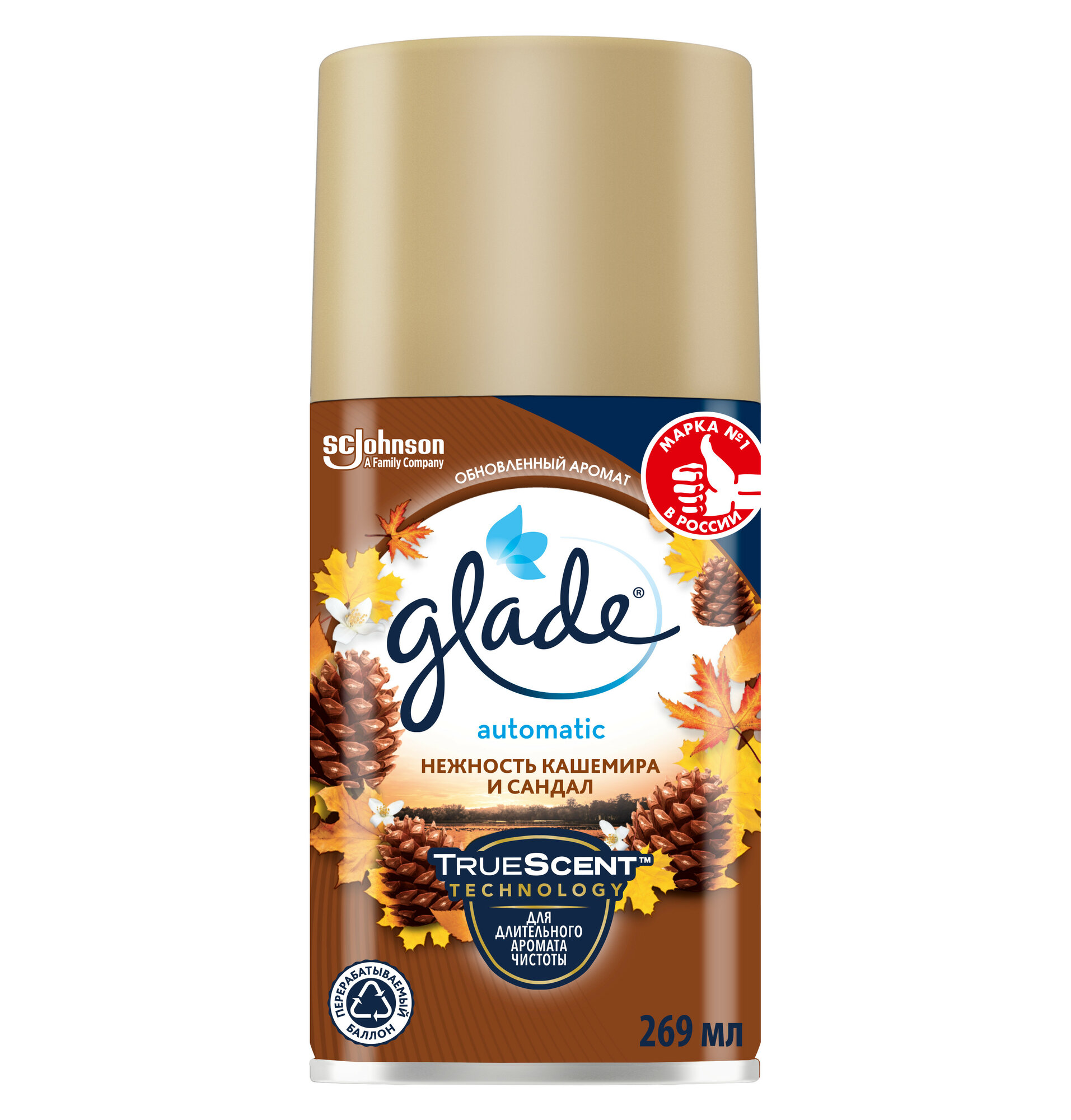 10 цен на Glade Automatic см. баллон "Нежность кашемира и сандал", 269мл
