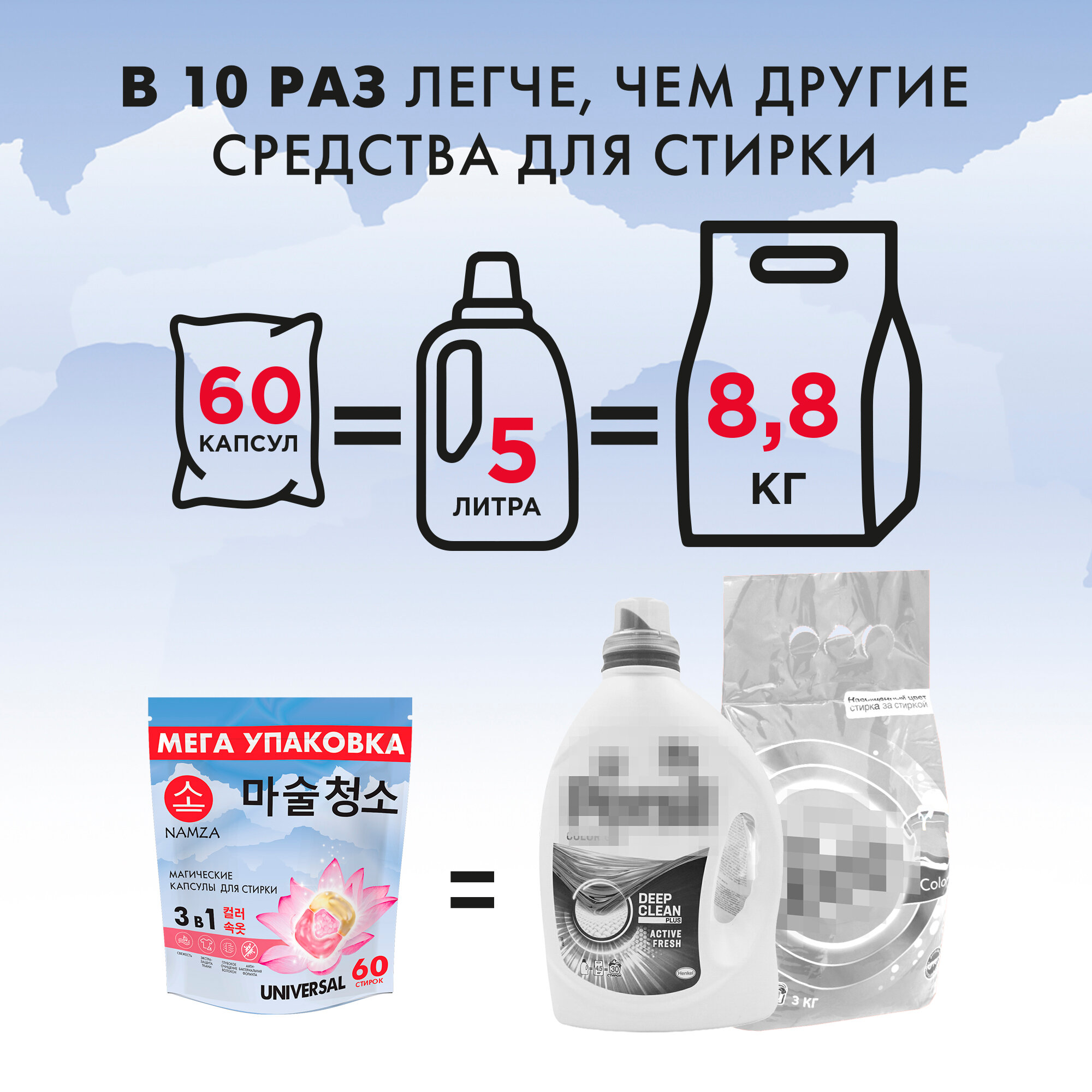 Капсулы для стирки белья с кондиционером 3 в 1 NAMZA, универсальное средство для стирки 120 шт. информация: