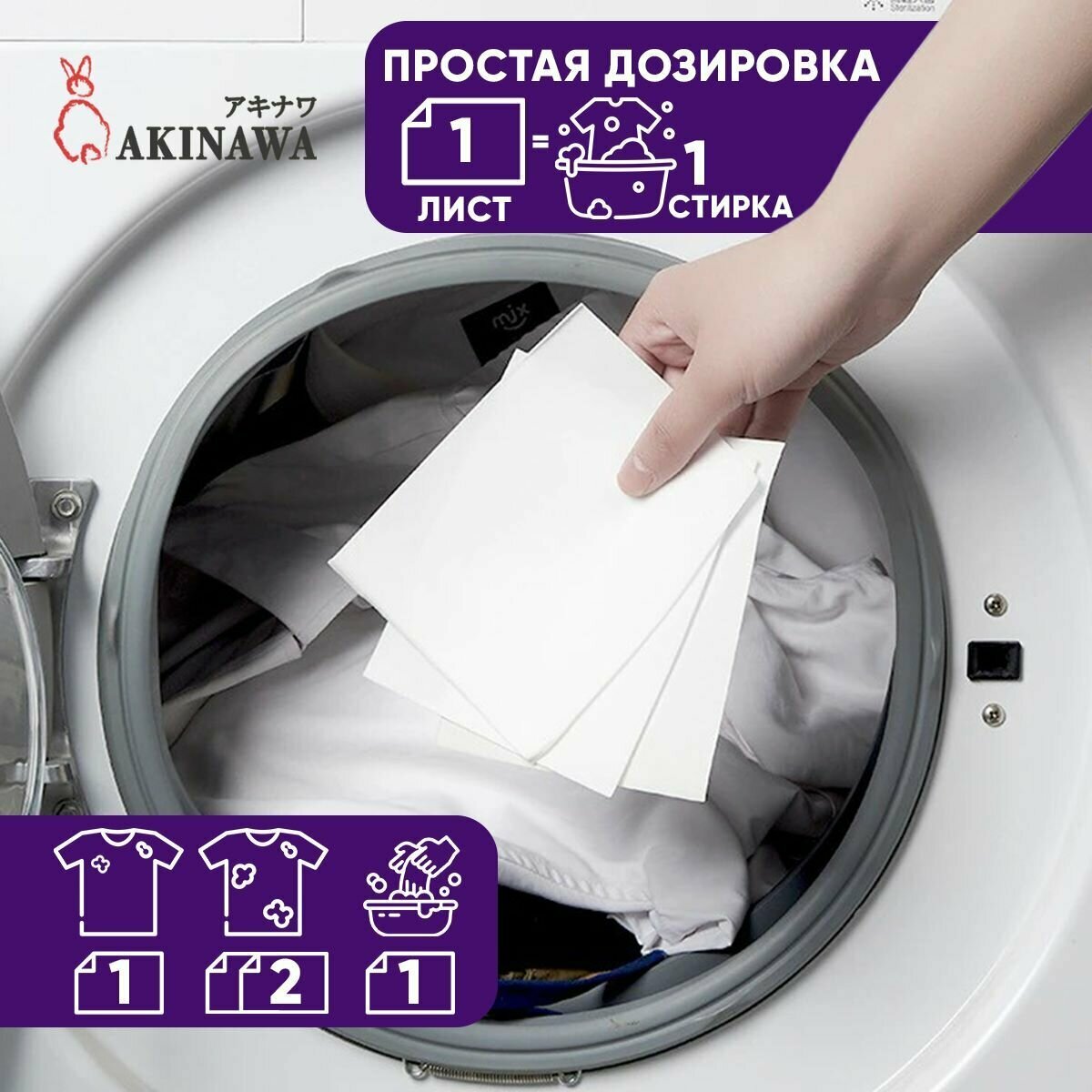 10 цен на Пластины для стирки Akinawa Freshline / универсальный, концентрированный, листовой стиральный порошок /эко средство, 60 листов