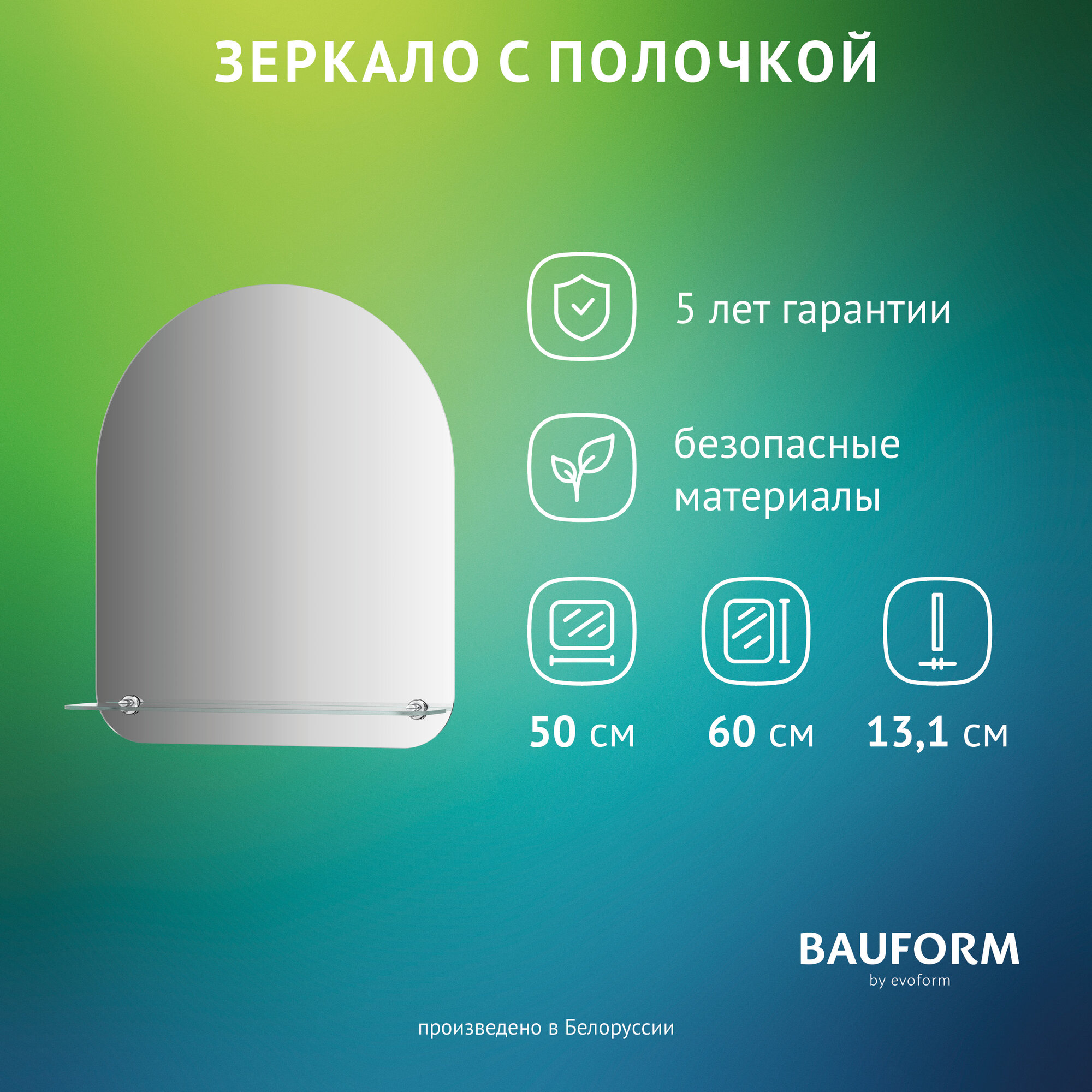 10 цен на Зеркало настенное с полочкой Арка SHELF EDGE BAUFORM 50х60 см, для гостиной, прихожей, спальни, кабинета и ванной комнаты, SP 9491