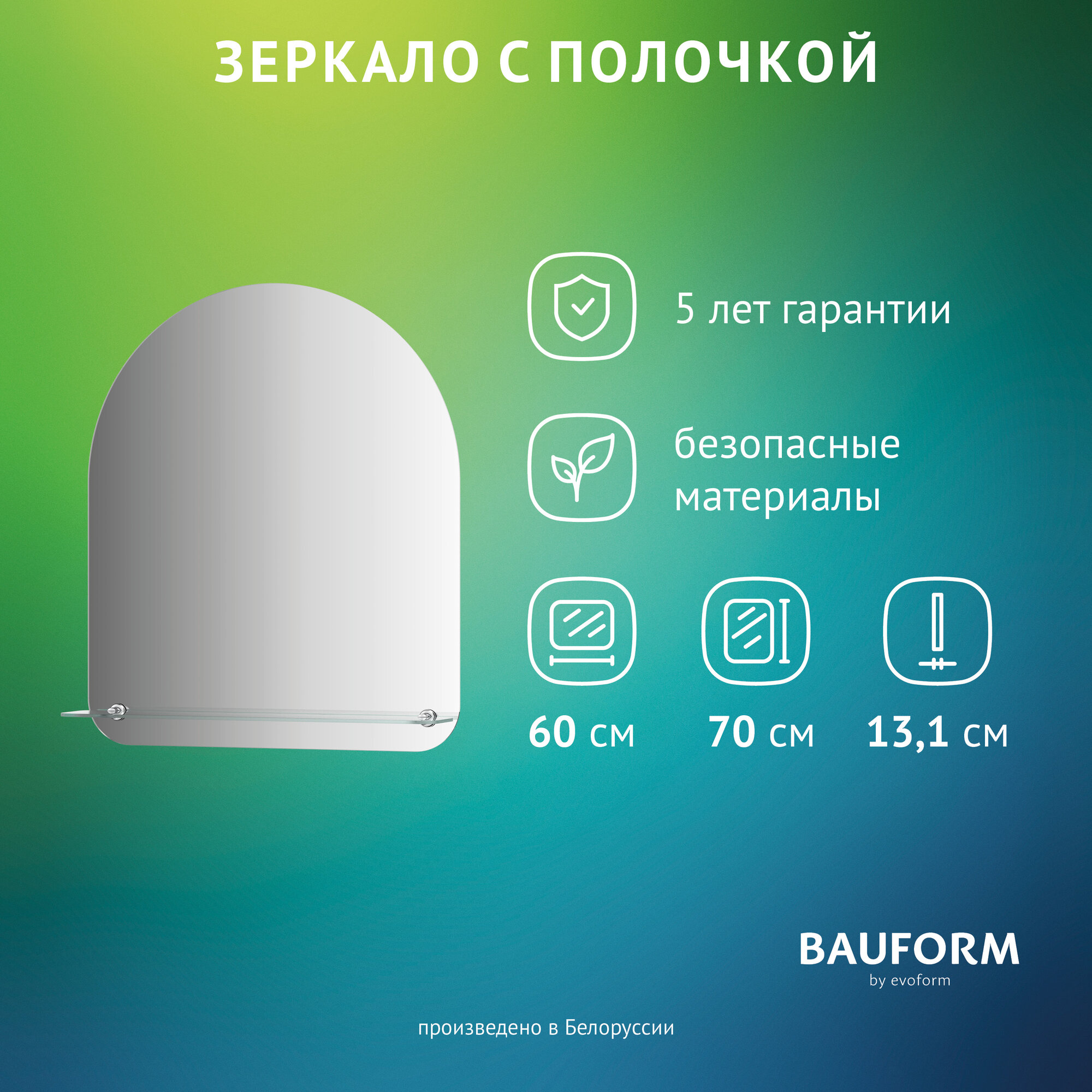 Зеркало настенное с полочкой Арка SHELF EDGE BAUFORM 60х70 см, для гостиной, прихожей, спальни, кабинета и ванной комнаты, SP 9488 информация: