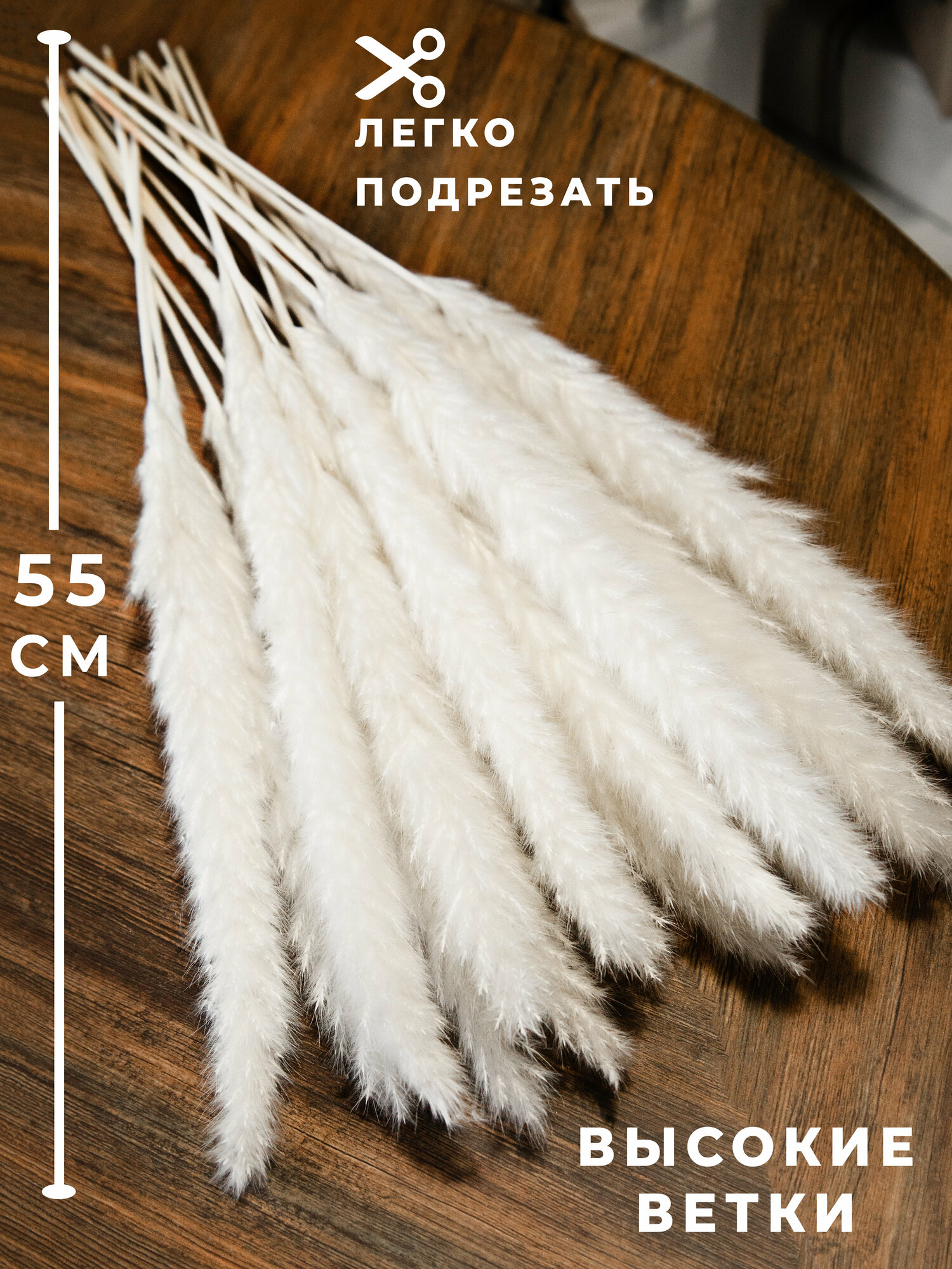Отзывы на Сухоцвет Пампасная трава белая 15шт, Сухоцветы для декора ARANTA, Букет сухоцветов 55см, 60гр