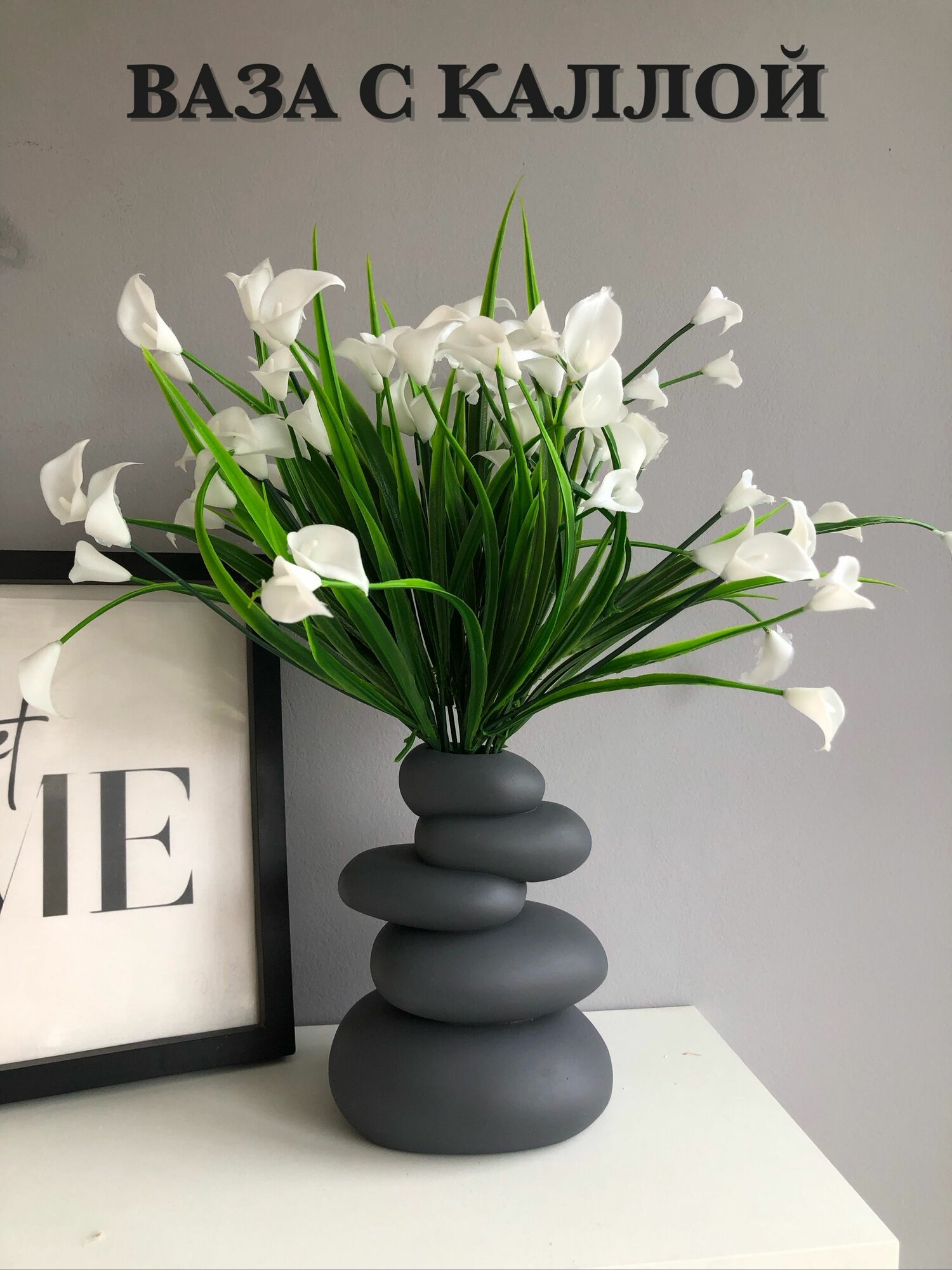 Искусственные цветы белые для декора в кашпо в виде камней информация: