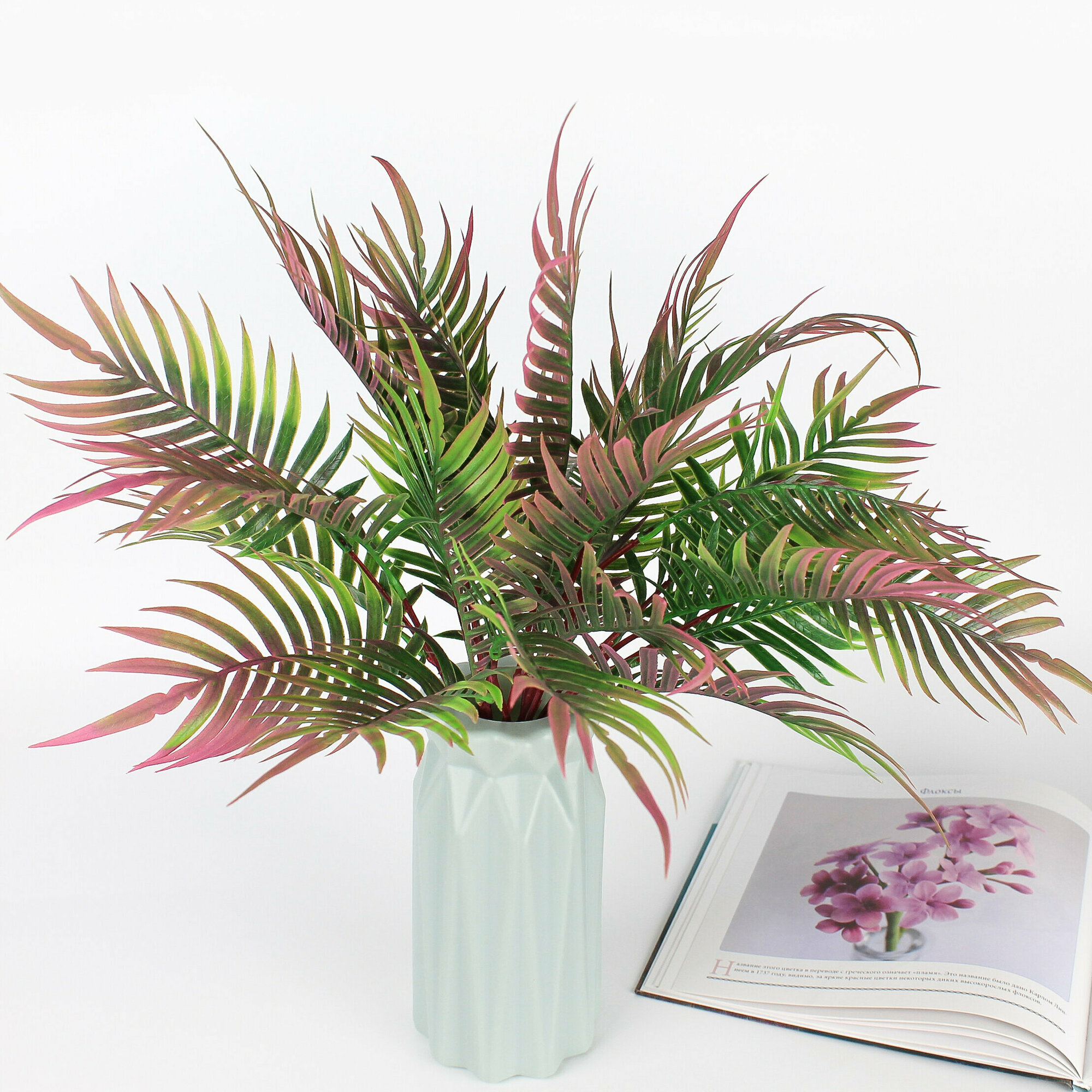 Отзывы на Пальма, сиреневая, искусственная зелень в букете 7 веток, букет 40 см, набор 2 букета