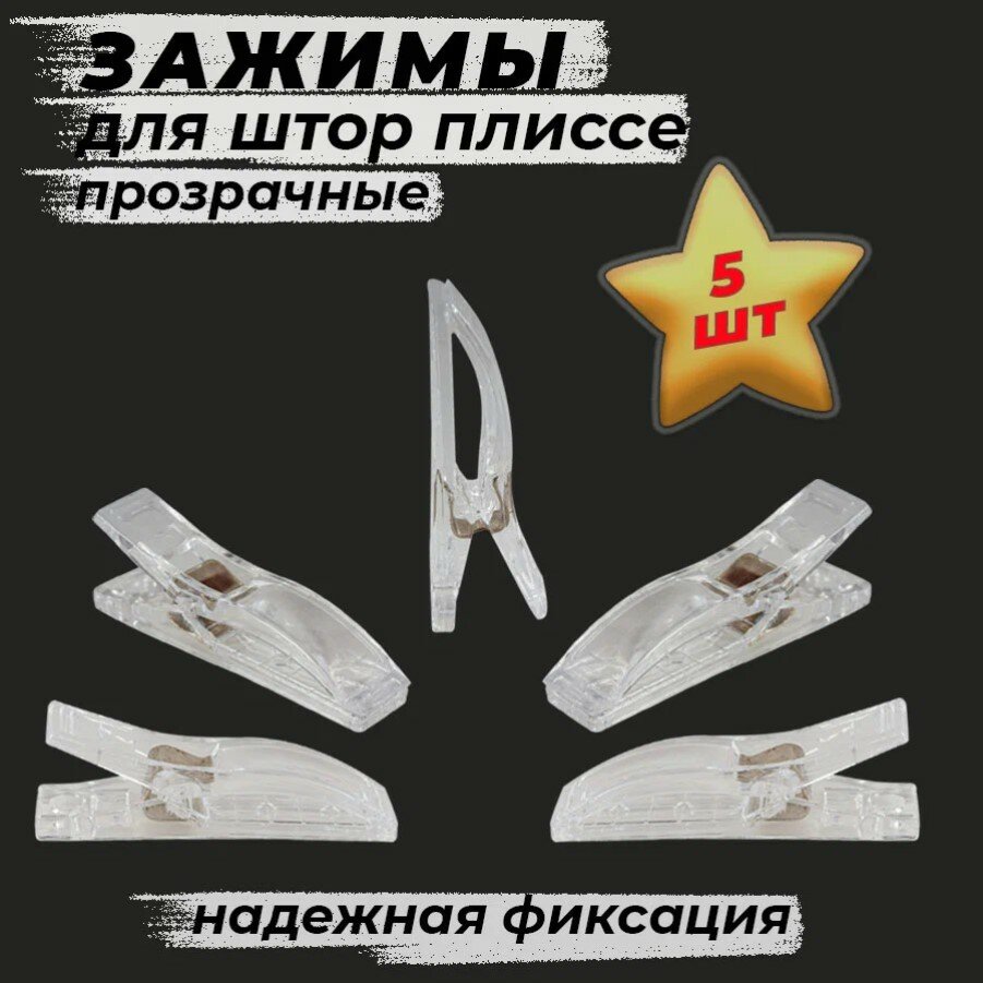 Отзывы на Зажимы прищепки для штор-плиссе 5,5х1.0 см, 5 штук, прозрачные, пластиковые