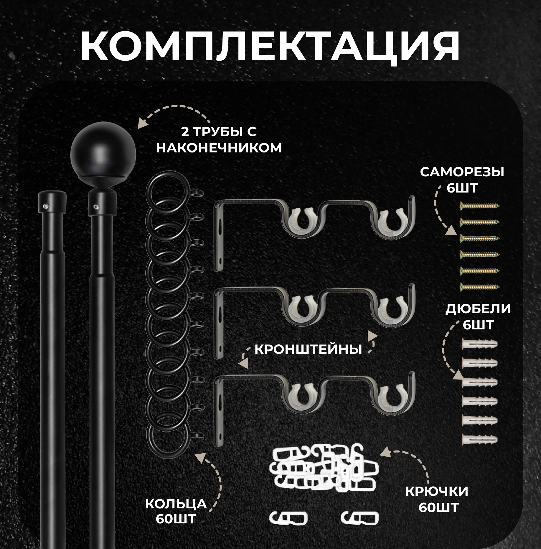 Карниз для штор металлический двухрядный раздвижной Сфера 16/19мм 160-300 см черный матовый информация: