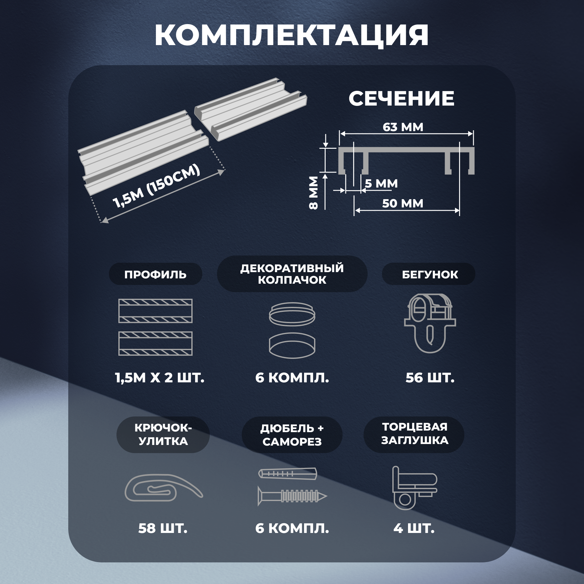 Карниз алюминиевый D-6 Премиум (составной) 2-х рядный, 3,0м, (2х1,5м) Белый информация:
