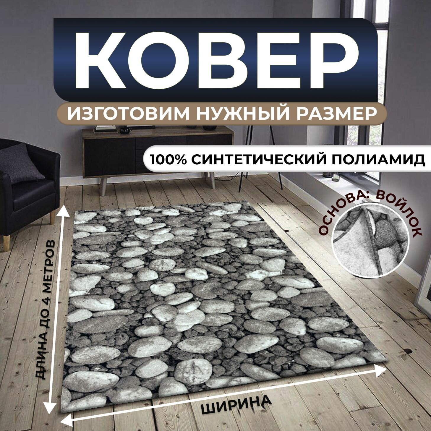 Ковер на пол, палас "Камни" 160х200 см информация: