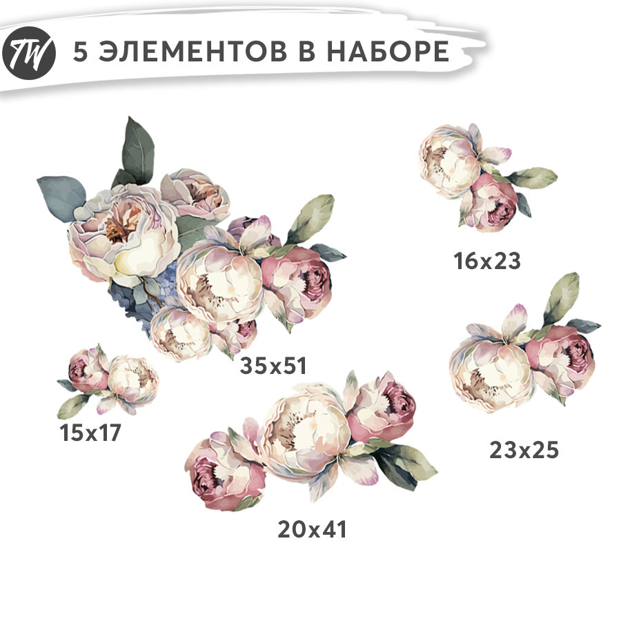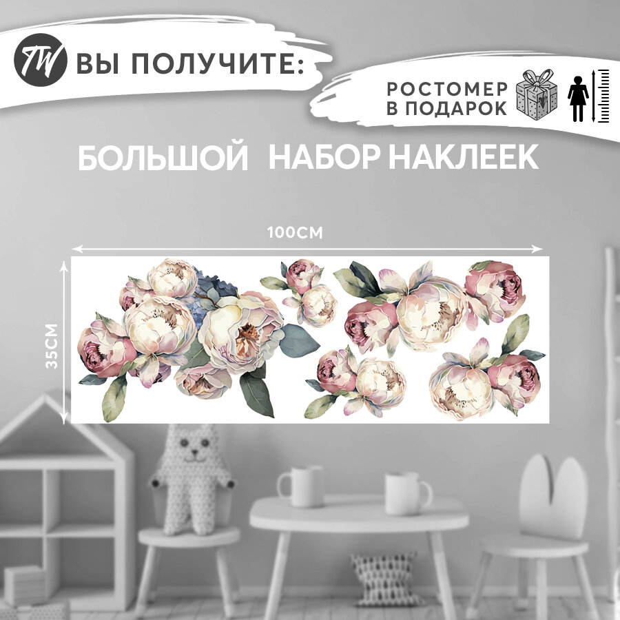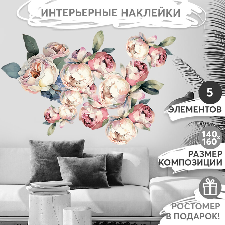 10 цен на Интерьерные наклейки на стену - Пионы