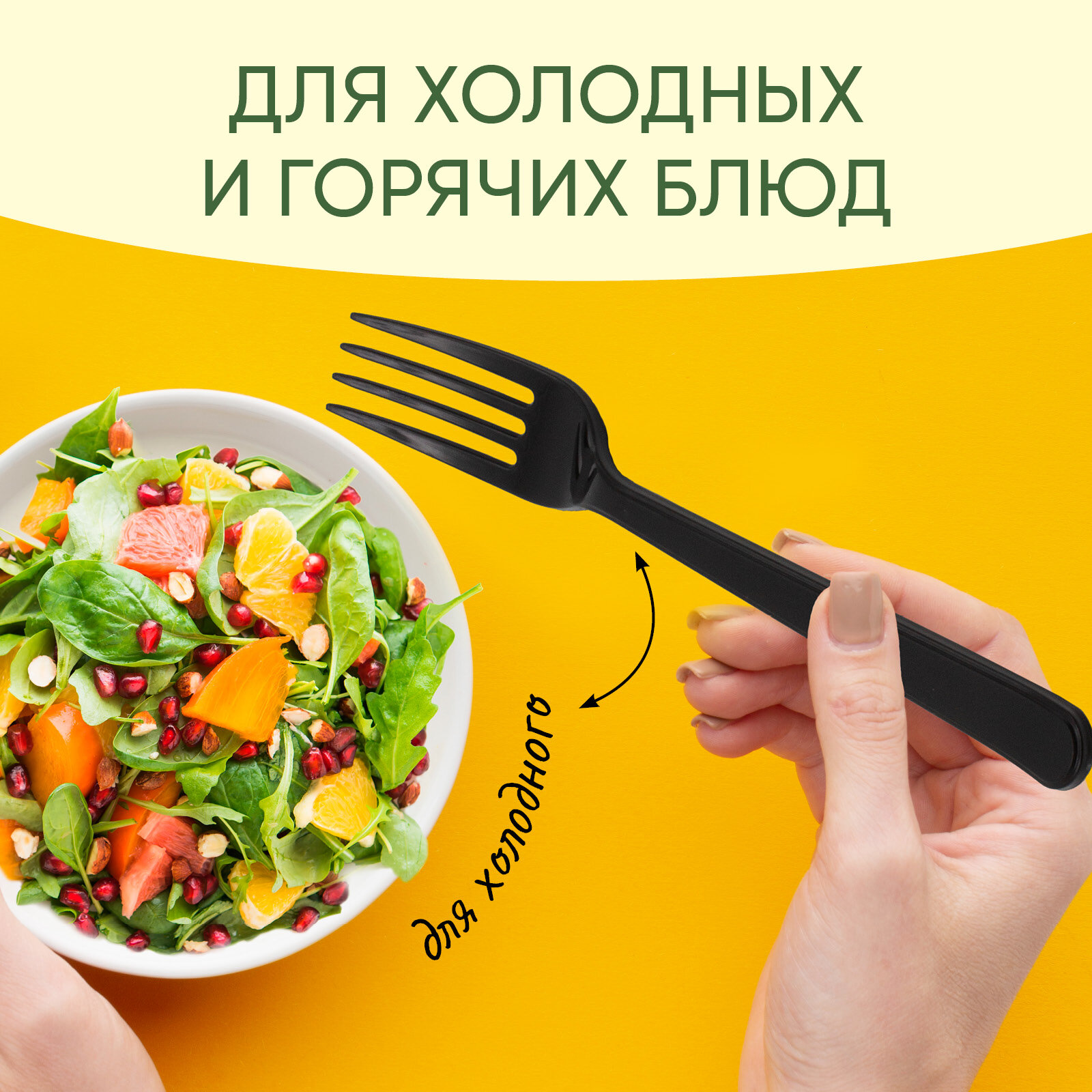 Отзывы на Вилка столовая одноразовая пластиковая 180 мм черная компакт премиум, 50 штук Optiline