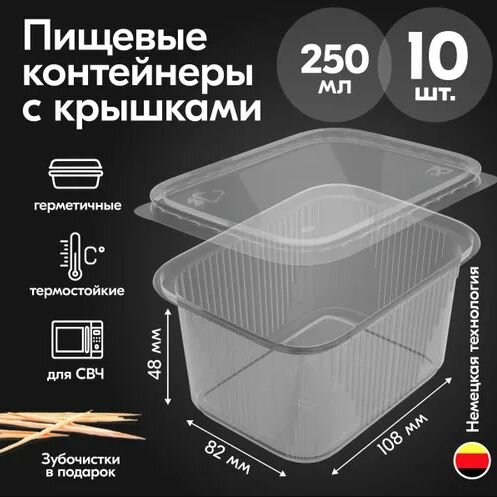 10 цен на Контейнеры одноразовые пластиковые прозрачные с крышкой 250 мл, набор посуды 10 шт.