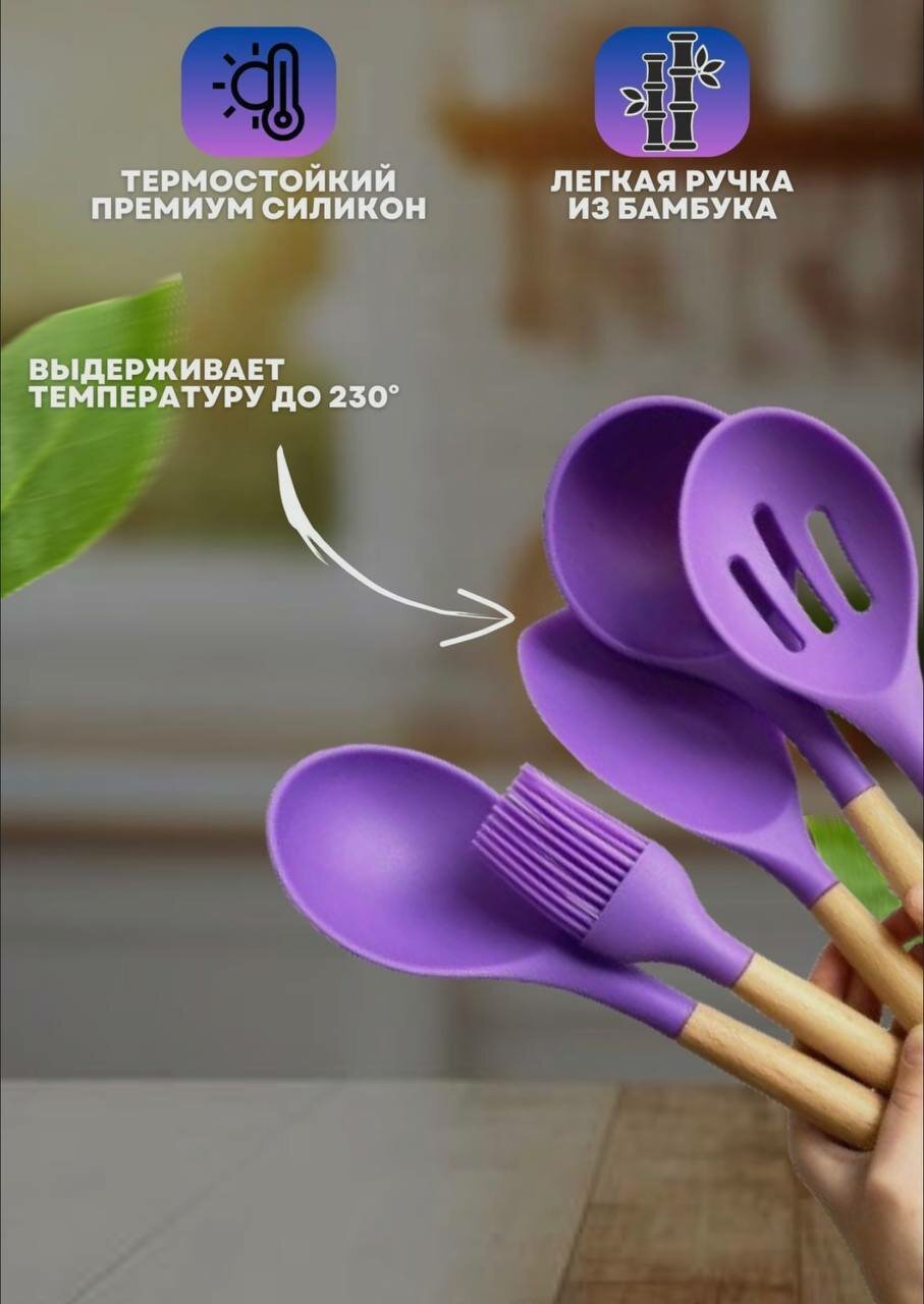 Набор кухонных принадлежностей из бука и силикона, 12 предметов - Идеальный подарок, фиолетовый информация: