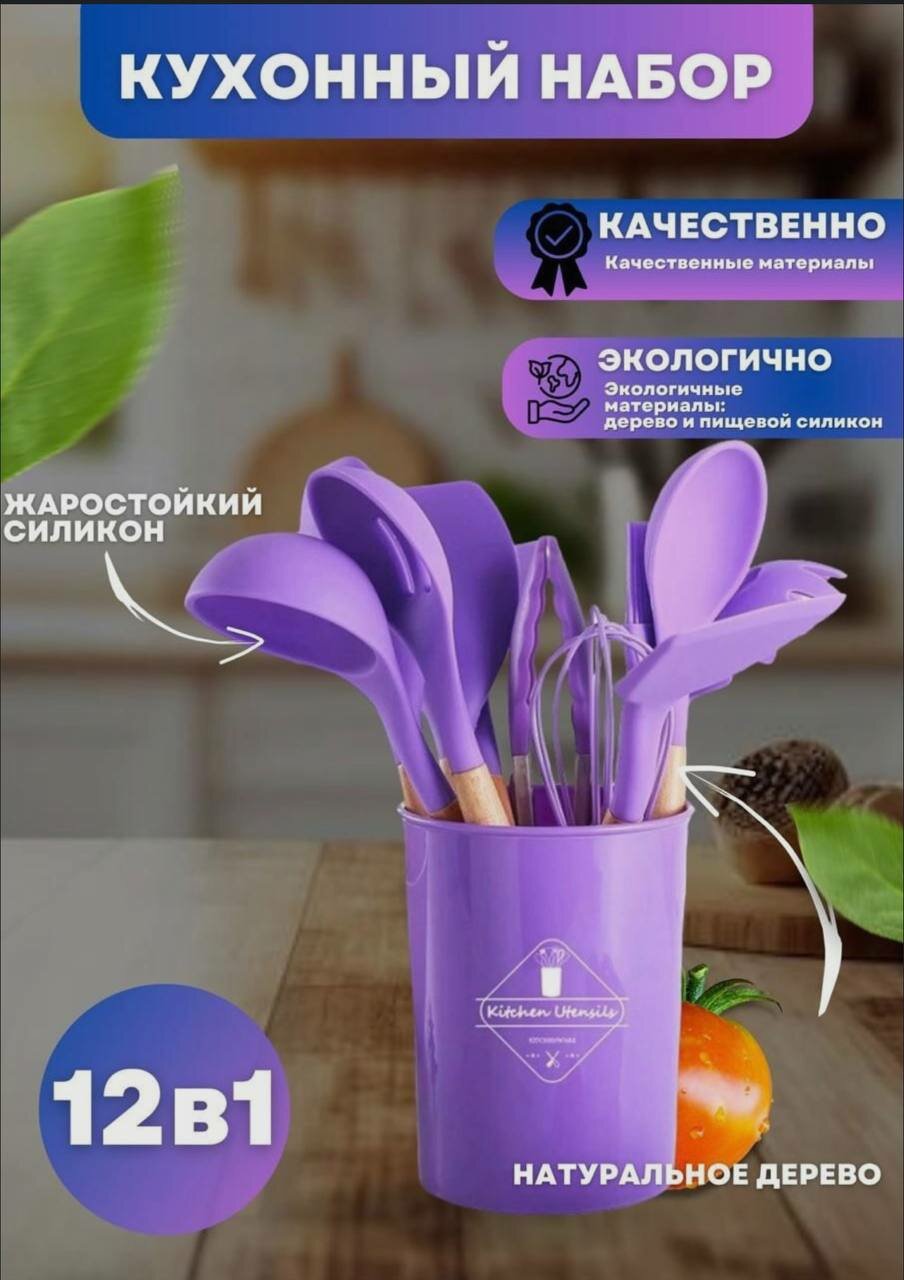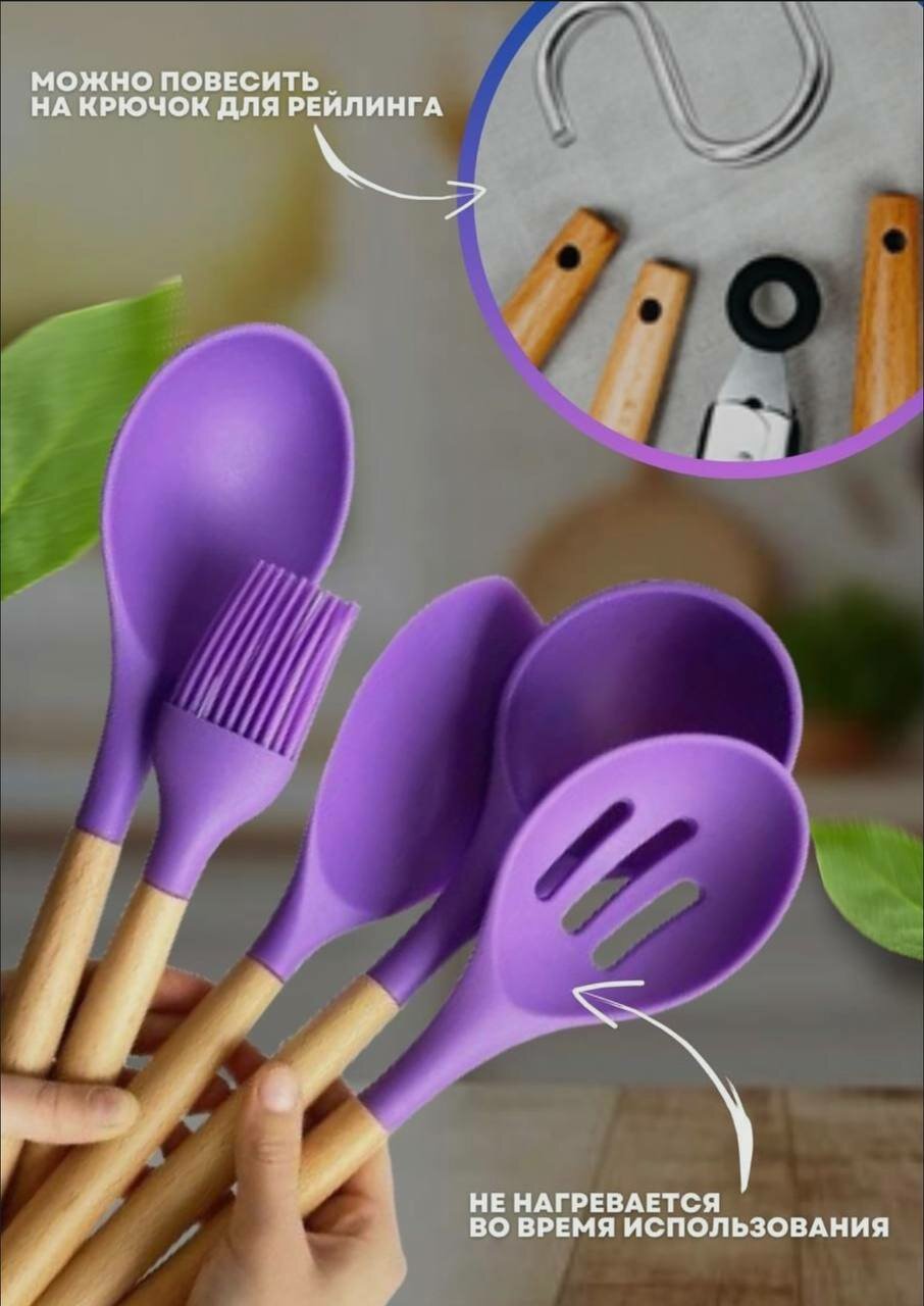 Отзывы на Набор кухонных принадлежностей из бука и силикона, 12 предметов - Идеальный подарок, фиолетовый