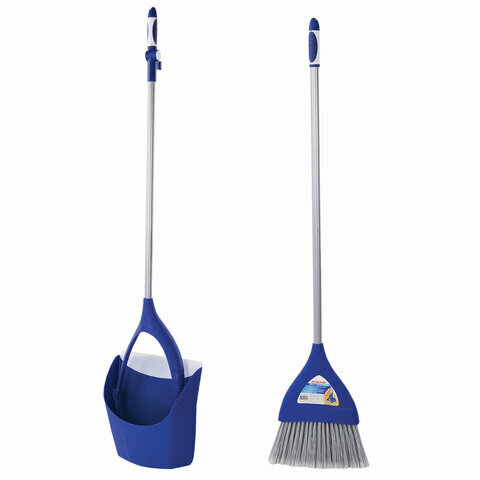 Совок для мусора + щетка, складной, металлические рукоятки 66 см, резиновая кромка, синий, LAIMA, 601474, 601474 1 336 ₽