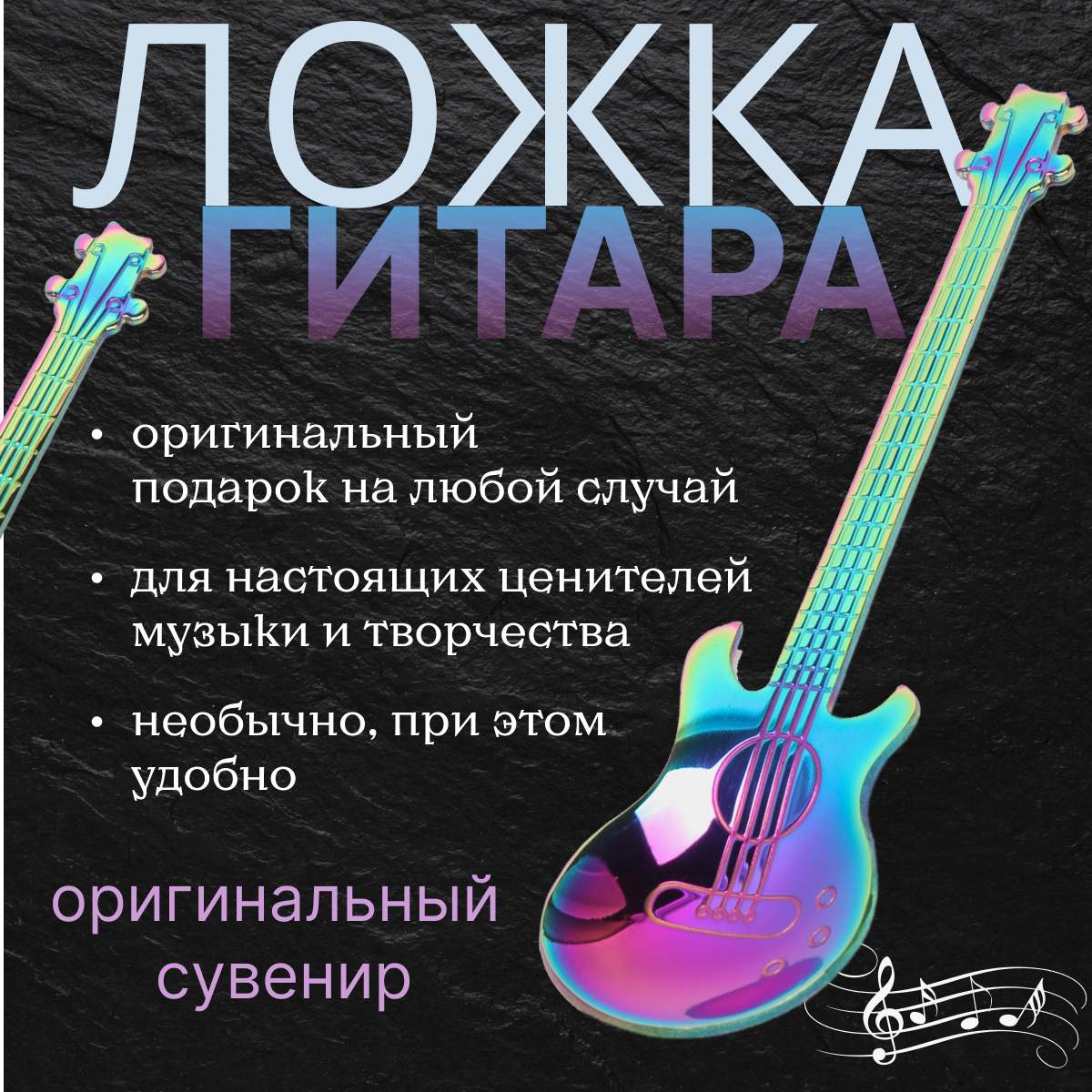 10 цен на Сувенирная чайная ложка музыканта Гитара, переливающаяся