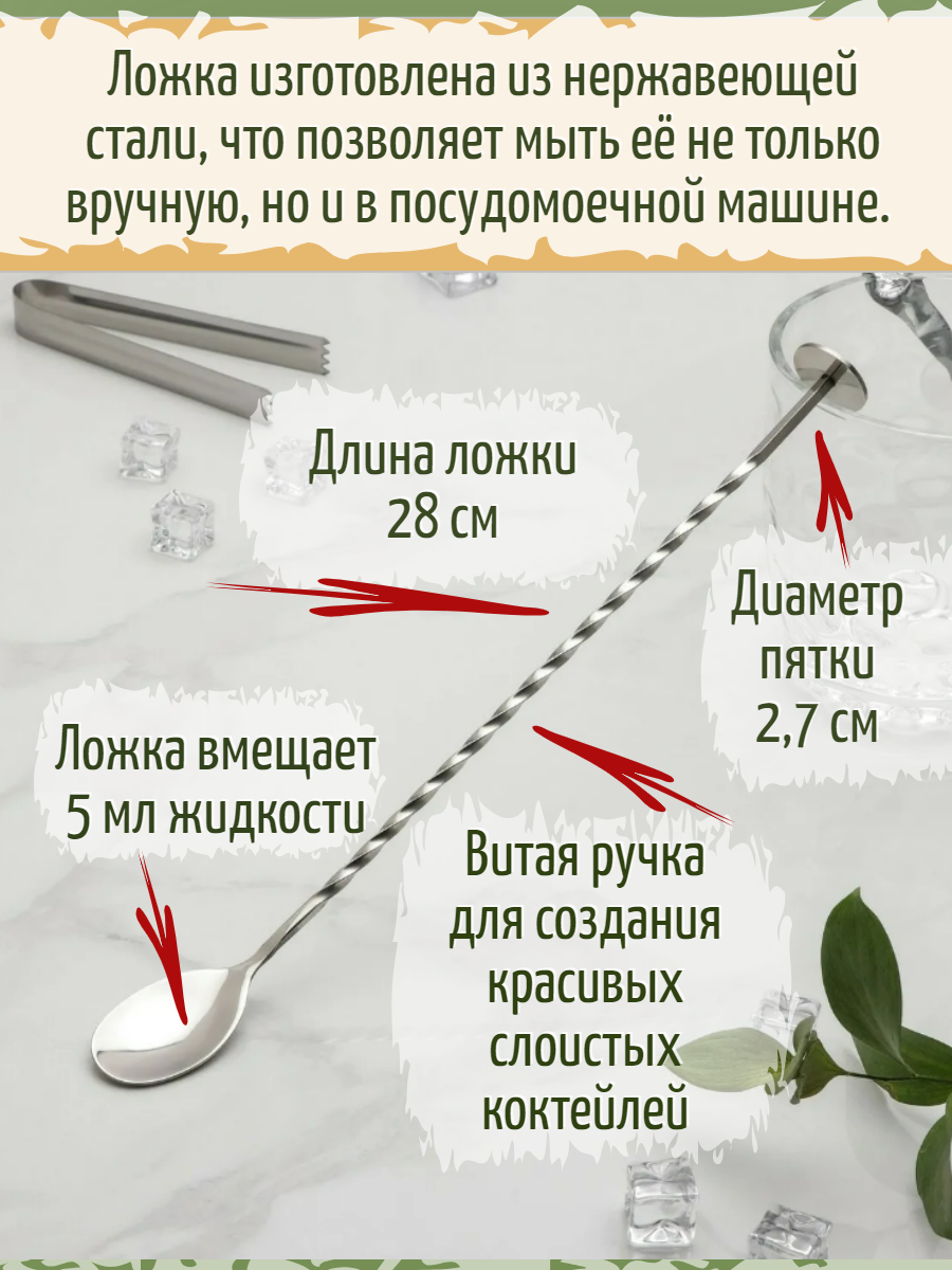 Барная ложка с пяткой информация: