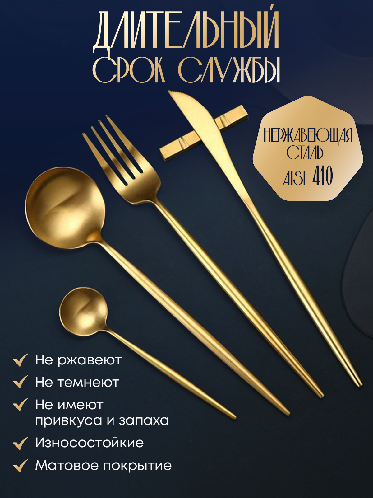 Отзывы на Набор столовых приборов c тяжёлой ручкой и матовым покрытием 24 предмета на 6 персон