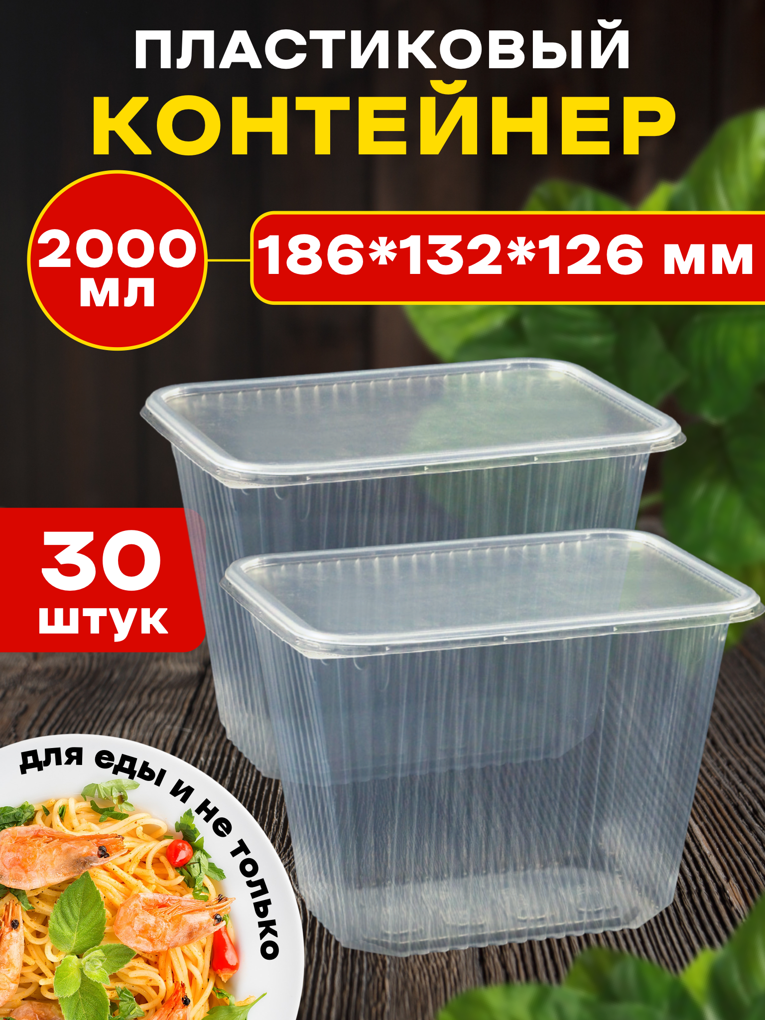 Контейнеры пластиковые для еды с крышкой, одноразовые, 2000 мл 30 шт. 186 серия информация:
