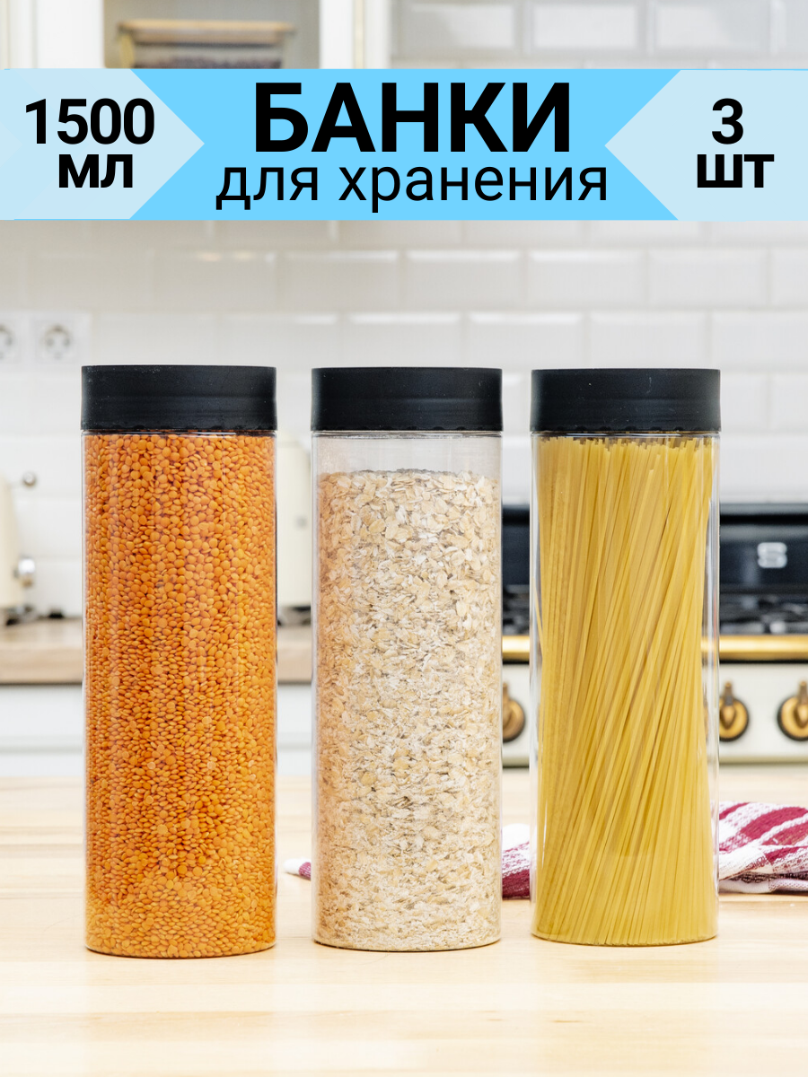 Отзывы на Банки для хранения сыпучих продуктов 1,5 л., 3 шт., пластиковые, прозрачные