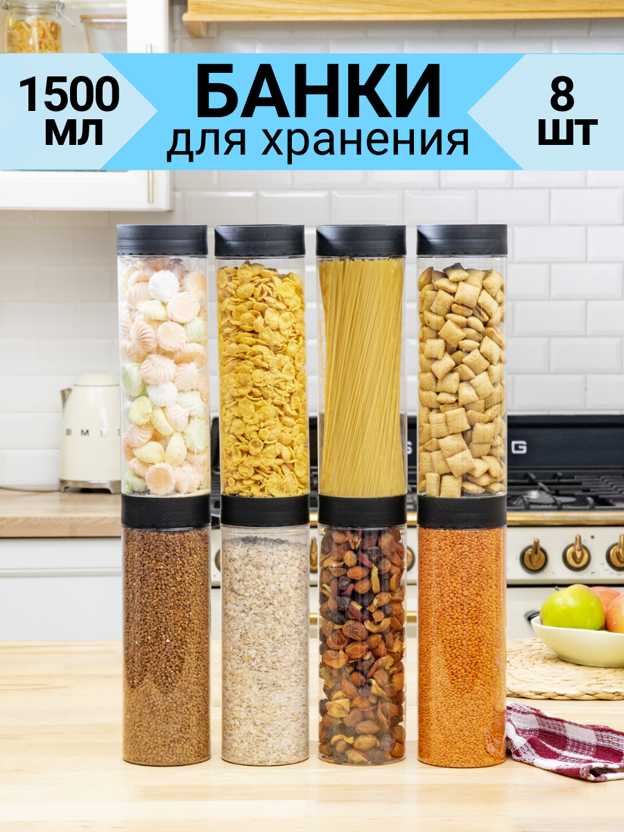 Отзывы на Банки для хранения сыпучих продуктов 1,5 л., 8 шт., пластиковые, прозрачные